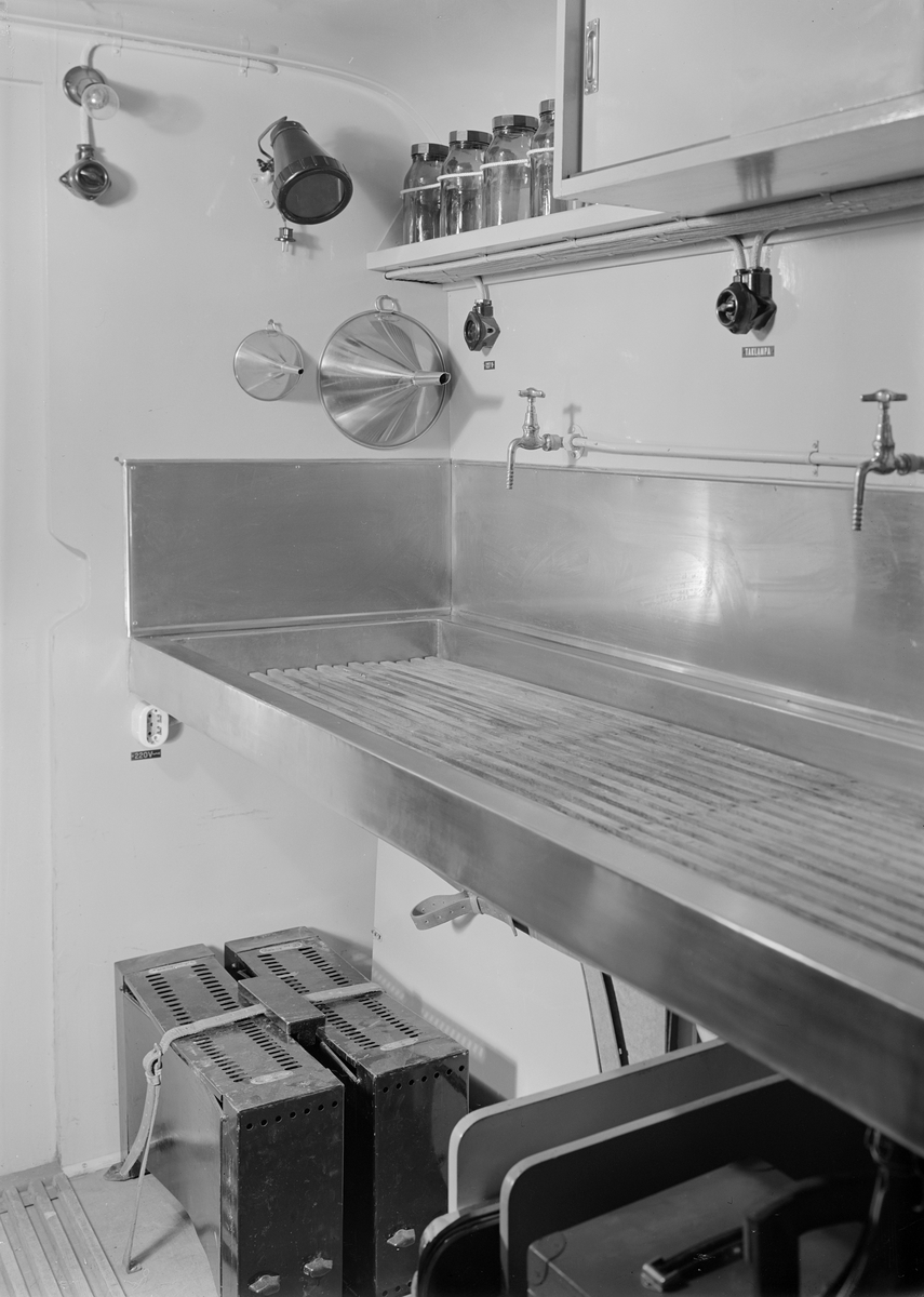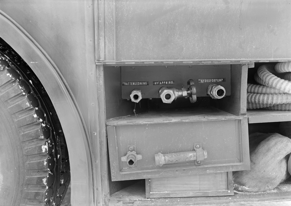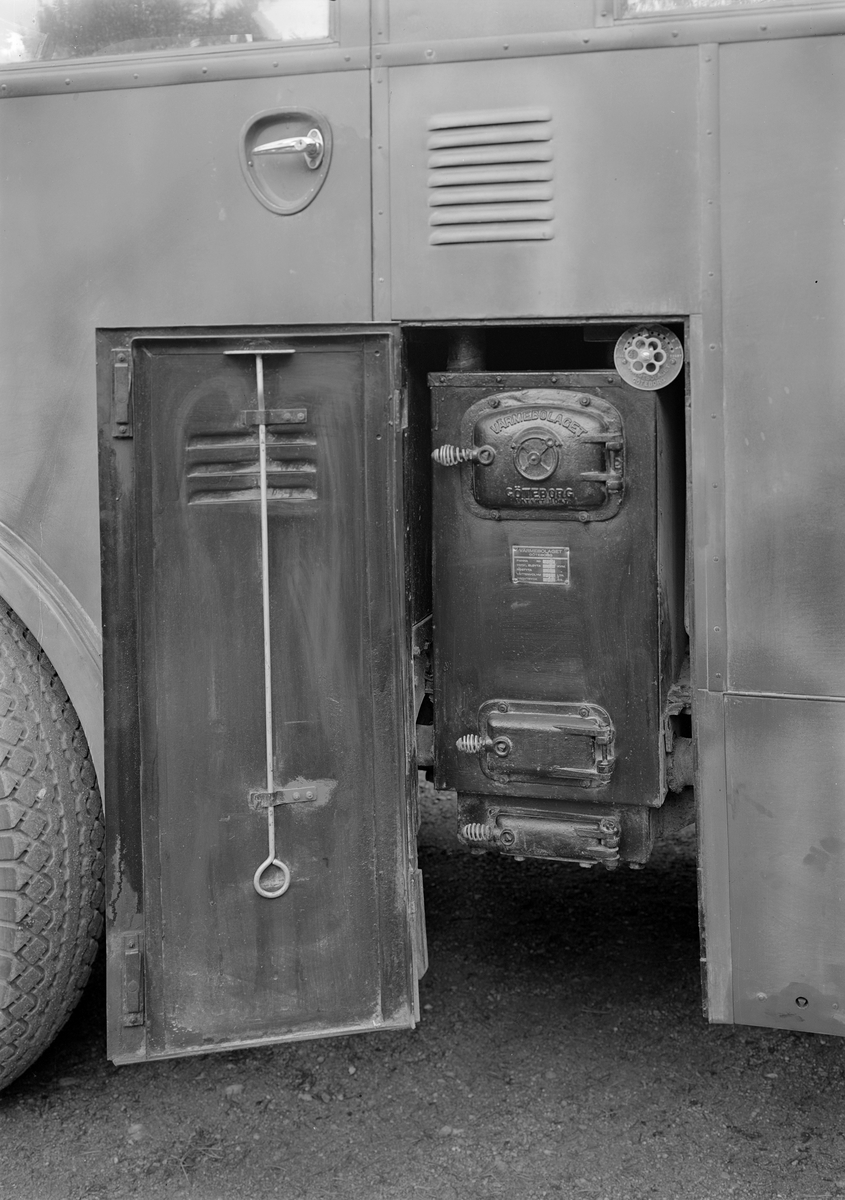 Fotobil modell m/45 med batterilucka utdragen respektive öppen. Exteriör.