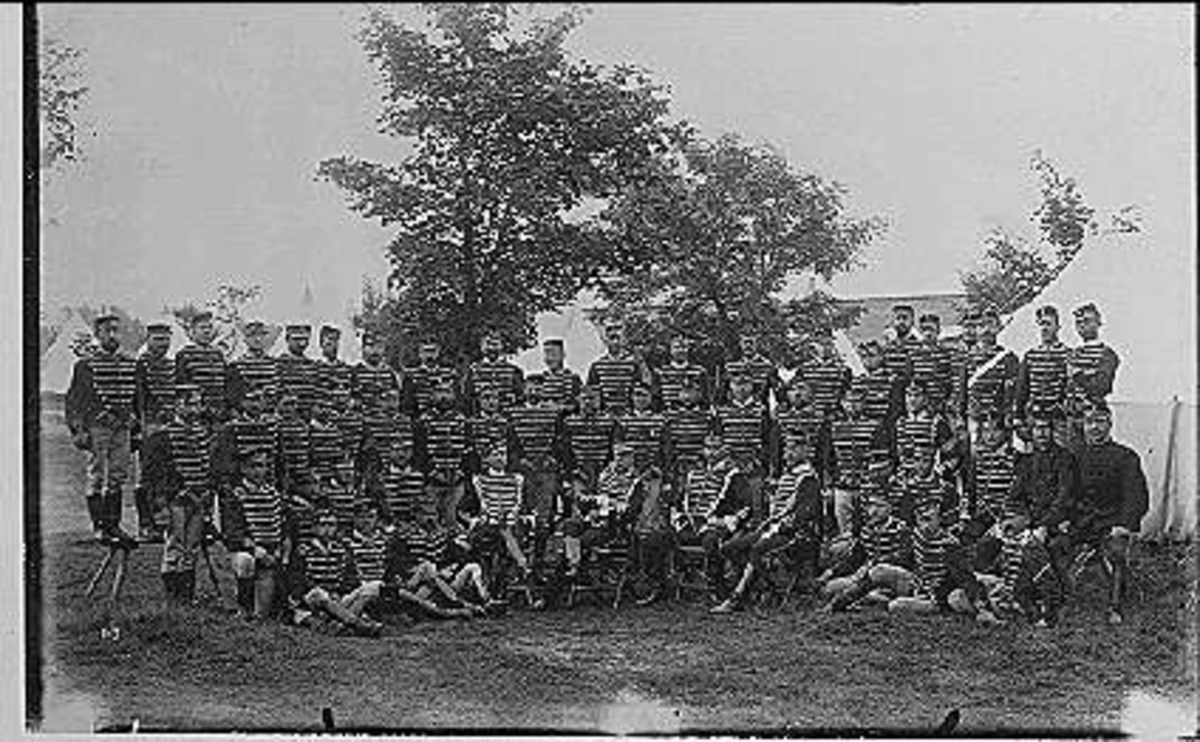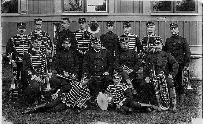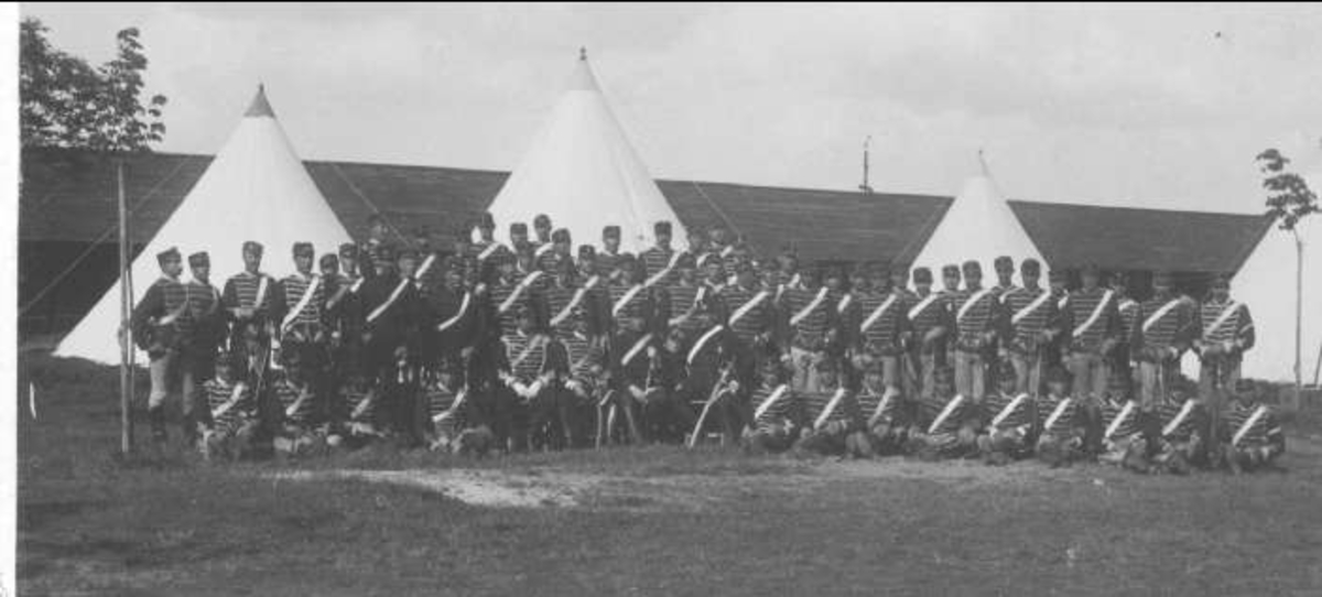 Östra Nerikes skvadron på Sanna Hed midsommar 1894. Se majstången över västra Nerikes stalltak.