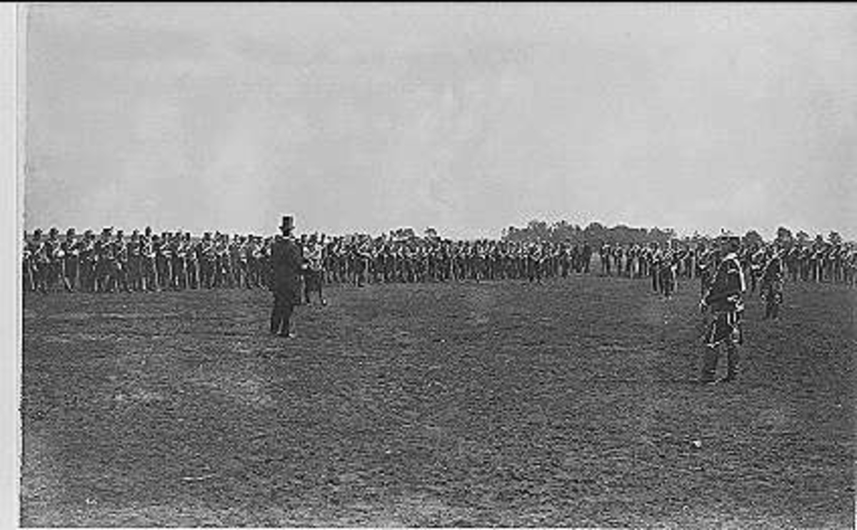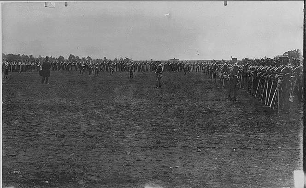 Regementet på uppställningsplatsen öster om lägerplatsen på Sanna hed 1894, troligen Korum.