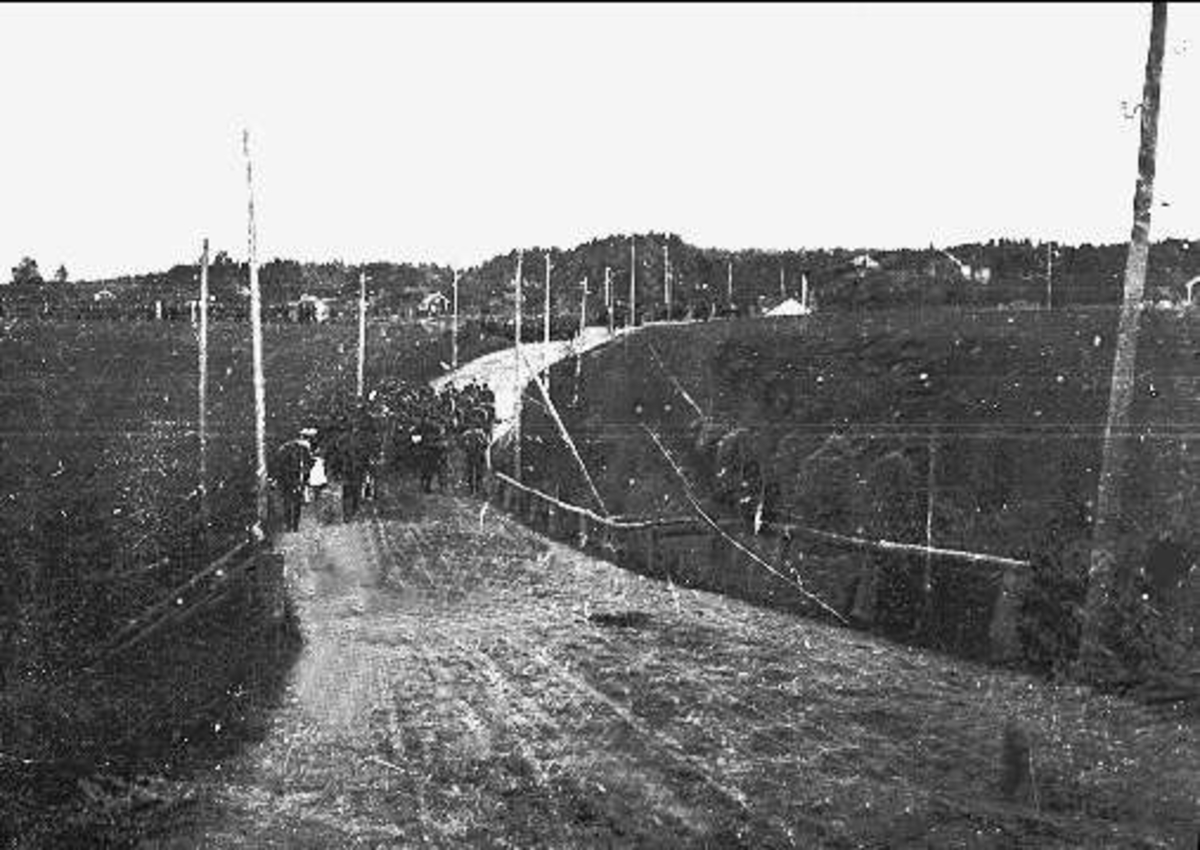 Fälttjänstövningar i Töcksmark år 1905. "Reservbro" väster Töcksfors.