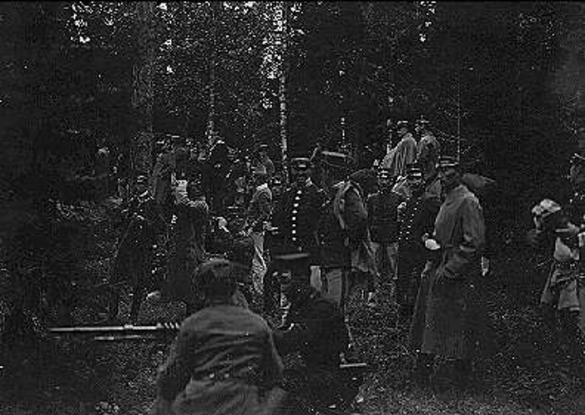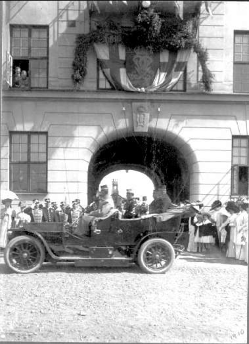 Hans Majestät Konungens besök juni 1910. Bilden tagen vid Björkdungen norr förvaltarbostaden. Området är nu Volvos B18-fabrik.