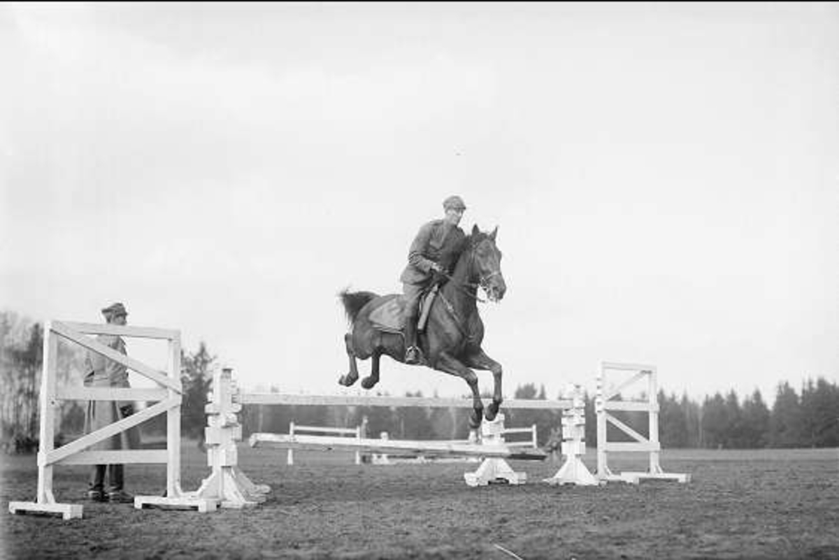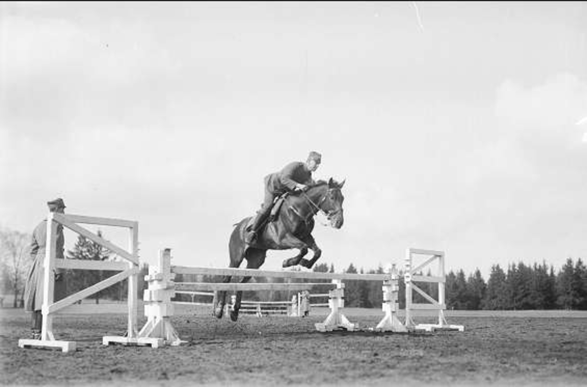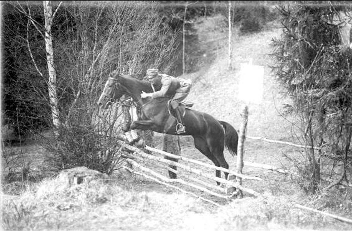 Patrulltävlan 1932, terrängritt. I täten patrullchefen Löjtnant Sven von Essen på Hendy Weapon**.