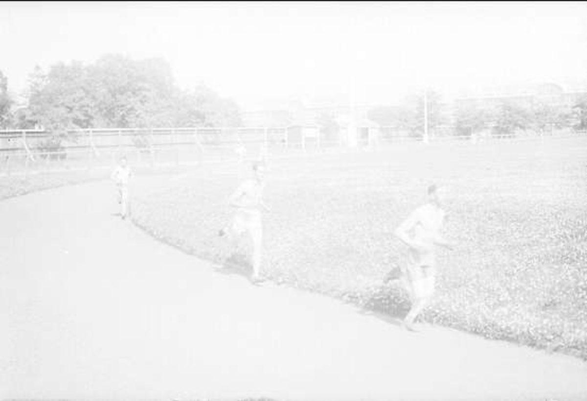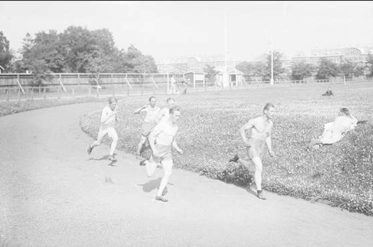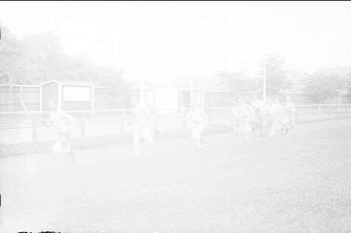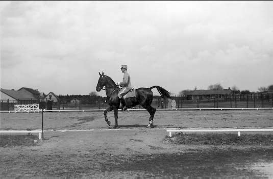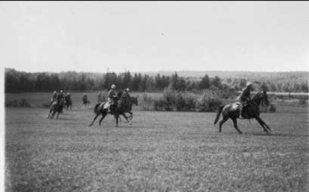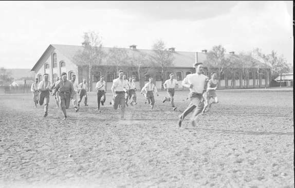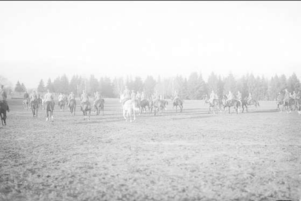 Regementskapplöpningarna 1932 på fältet söder K 3 kasern. Från jordvallen mellan I 9 / P 4 och trumslagargropen mot kasern. Börje Åkerlindh leder.