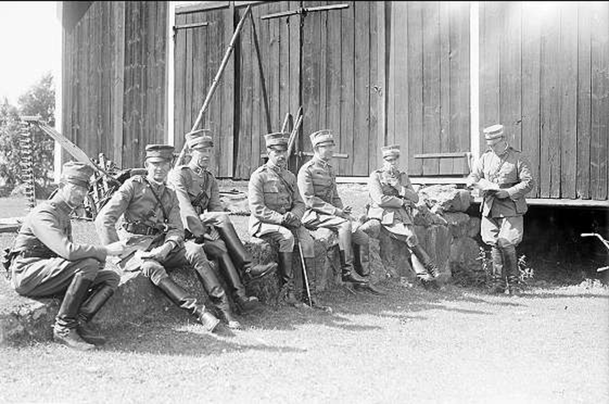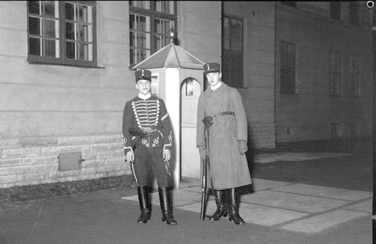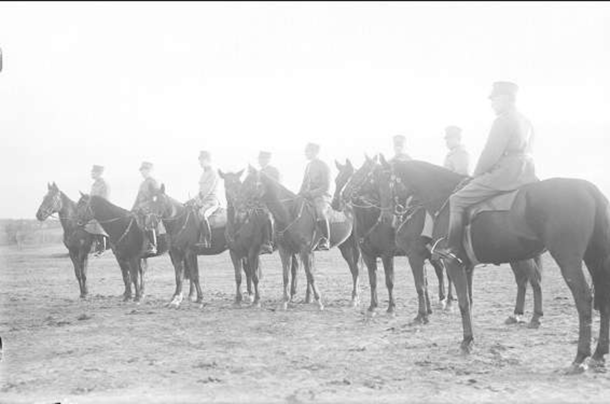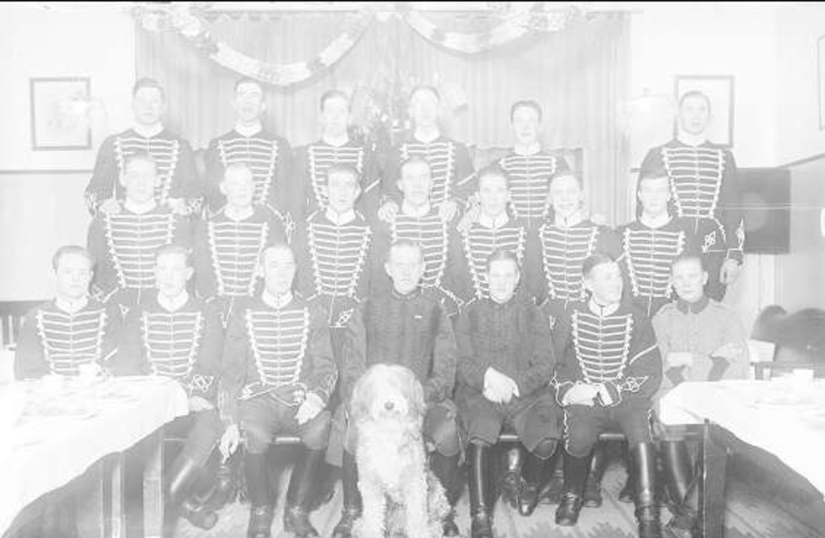 Beredskapsavdelningen med skvadronschef och troppchef. Skvadronschef antagligen ryttm Peter von Essen. Troppchef fänrik M. Wernstedt.