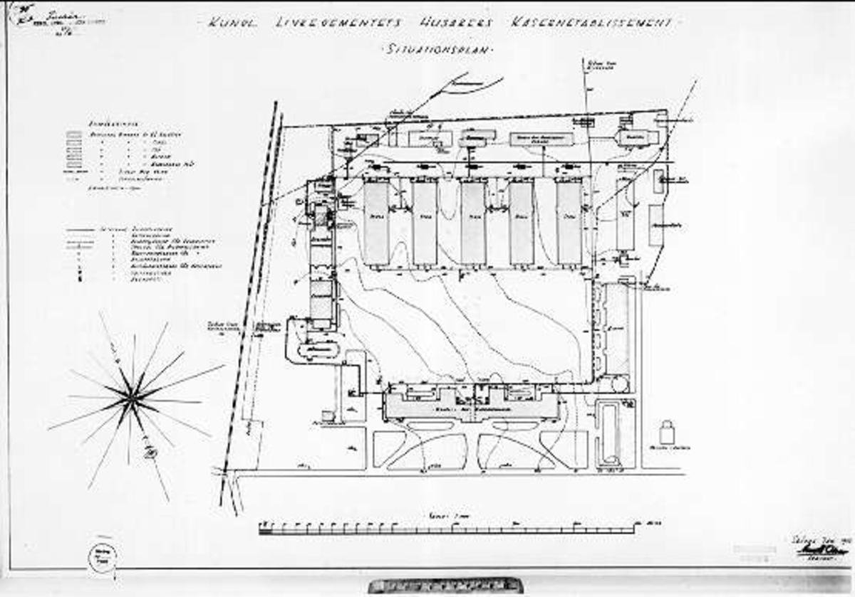 Kungliga Livregementets husarers kasernetablissement situationsplan i Skövde (Gärdhem).