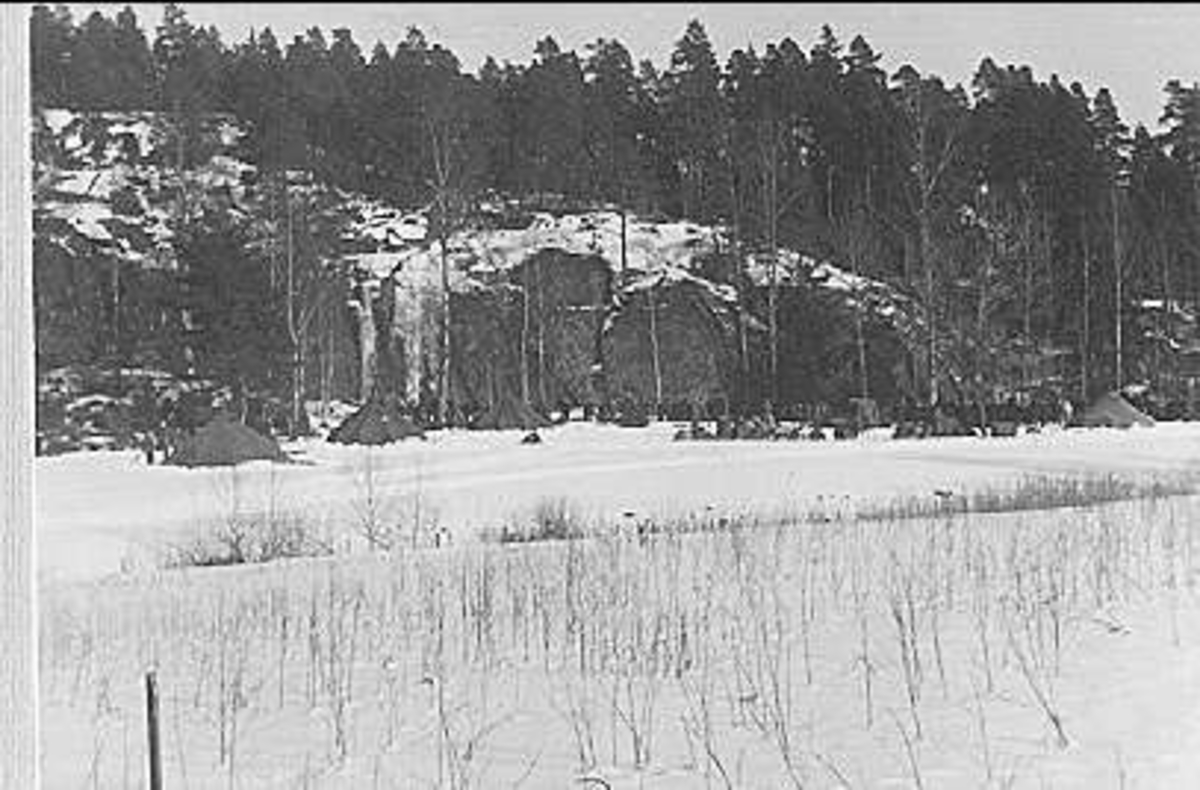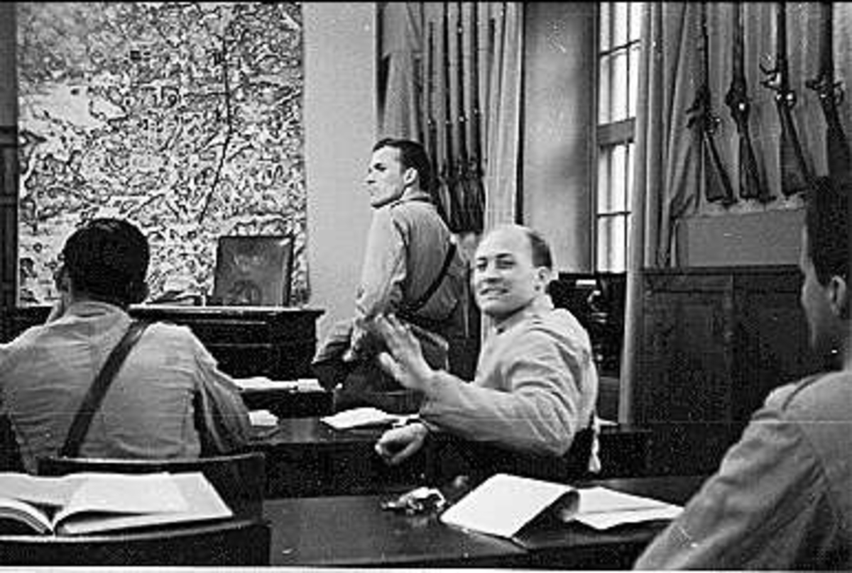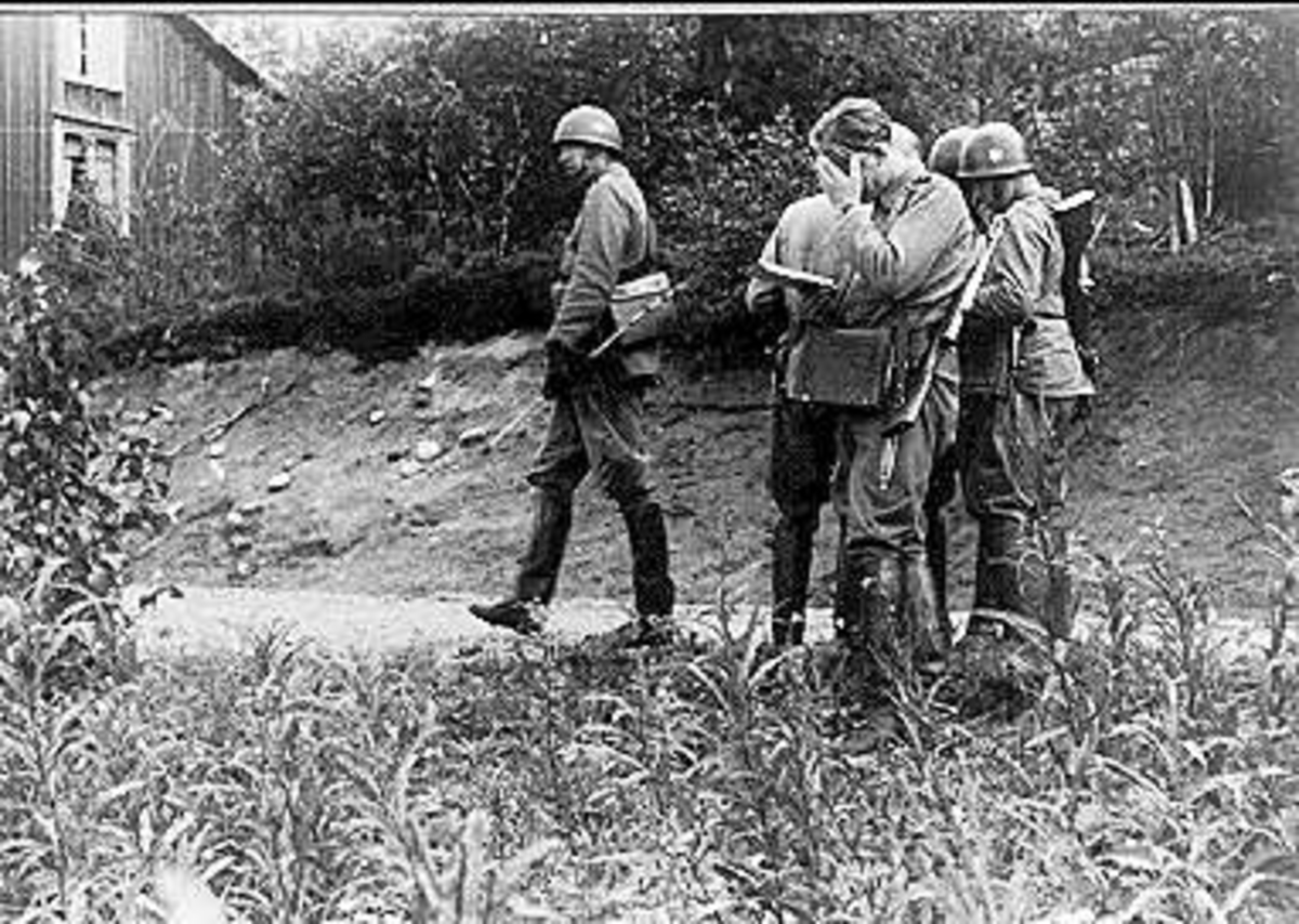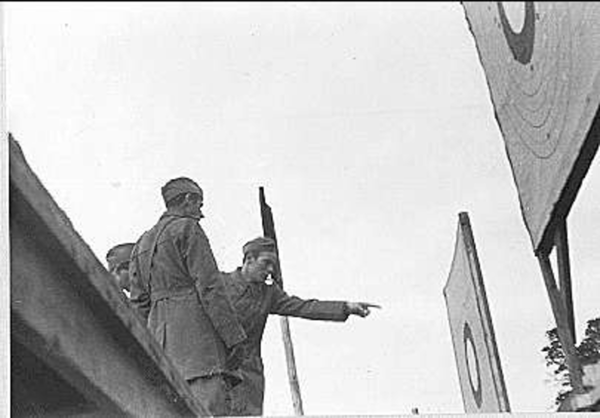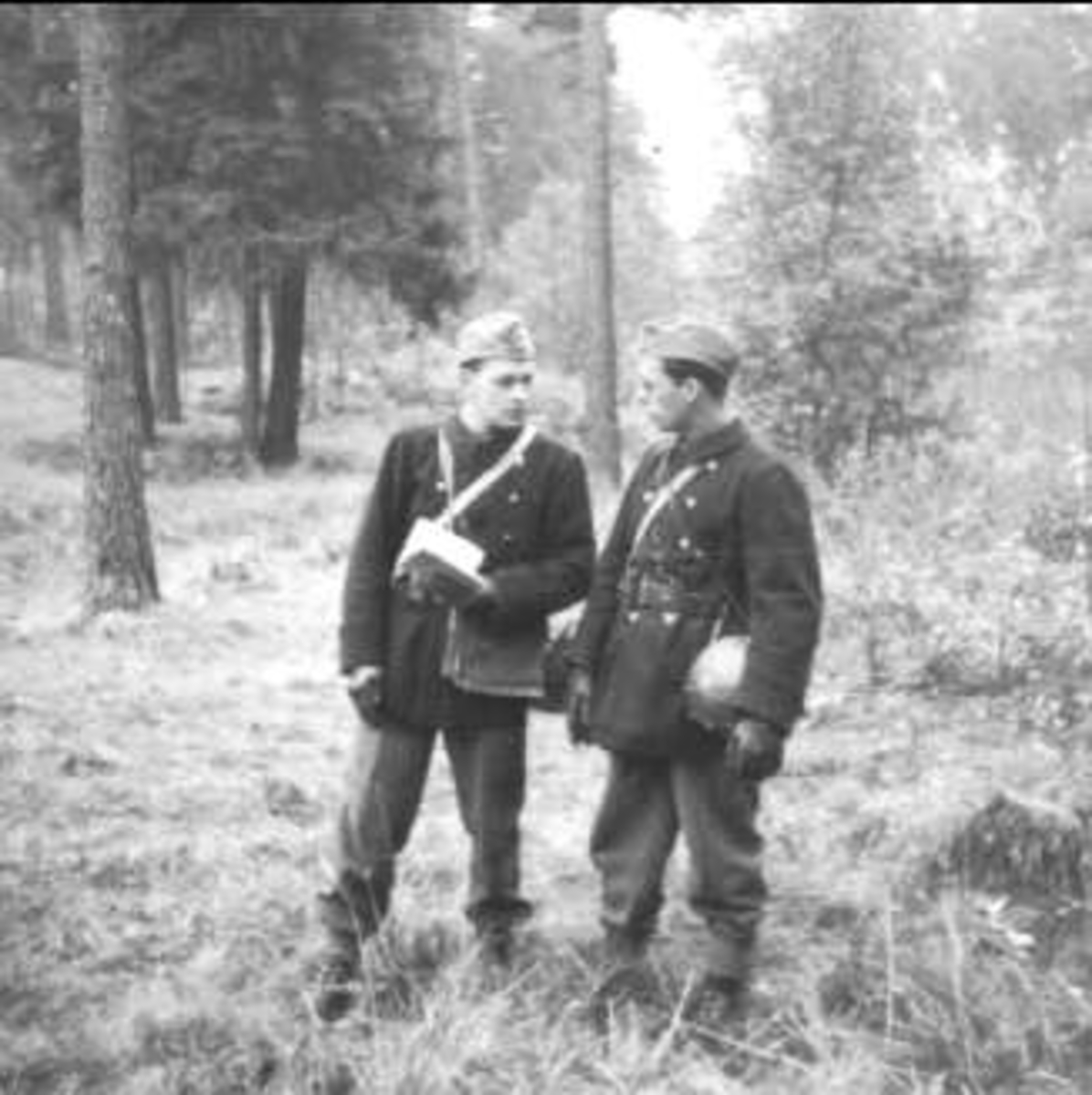 Livskv minnessten vid Fellingsbro avtäckes. I främre raden från vänster: major Afzelius, major H Ling-Vannerus, överste E Flodström, överste G Bergenstråhle och major Sven Littorin.