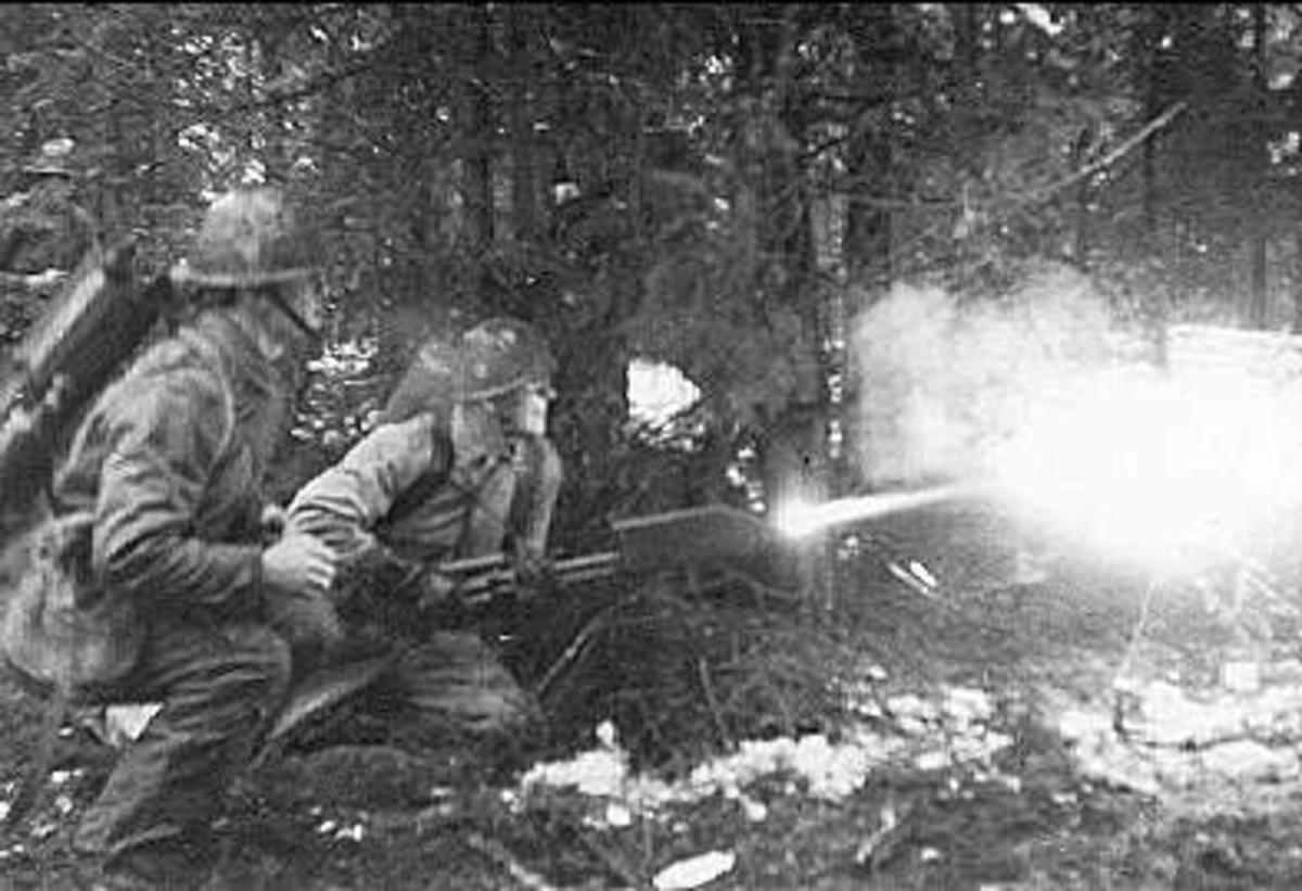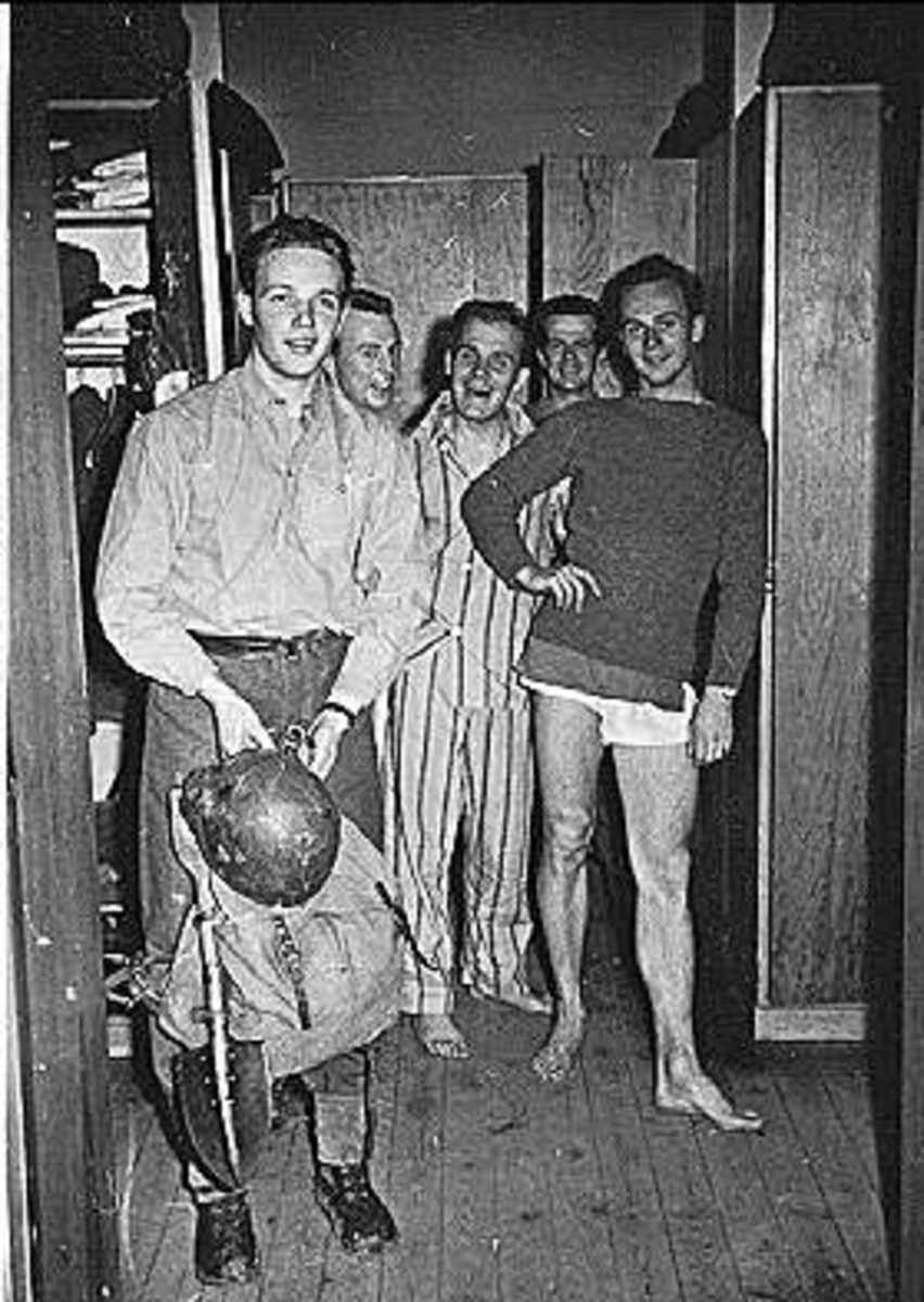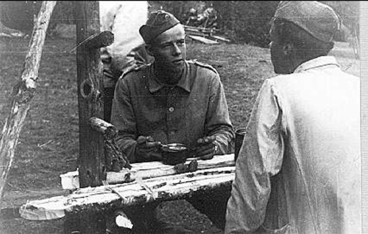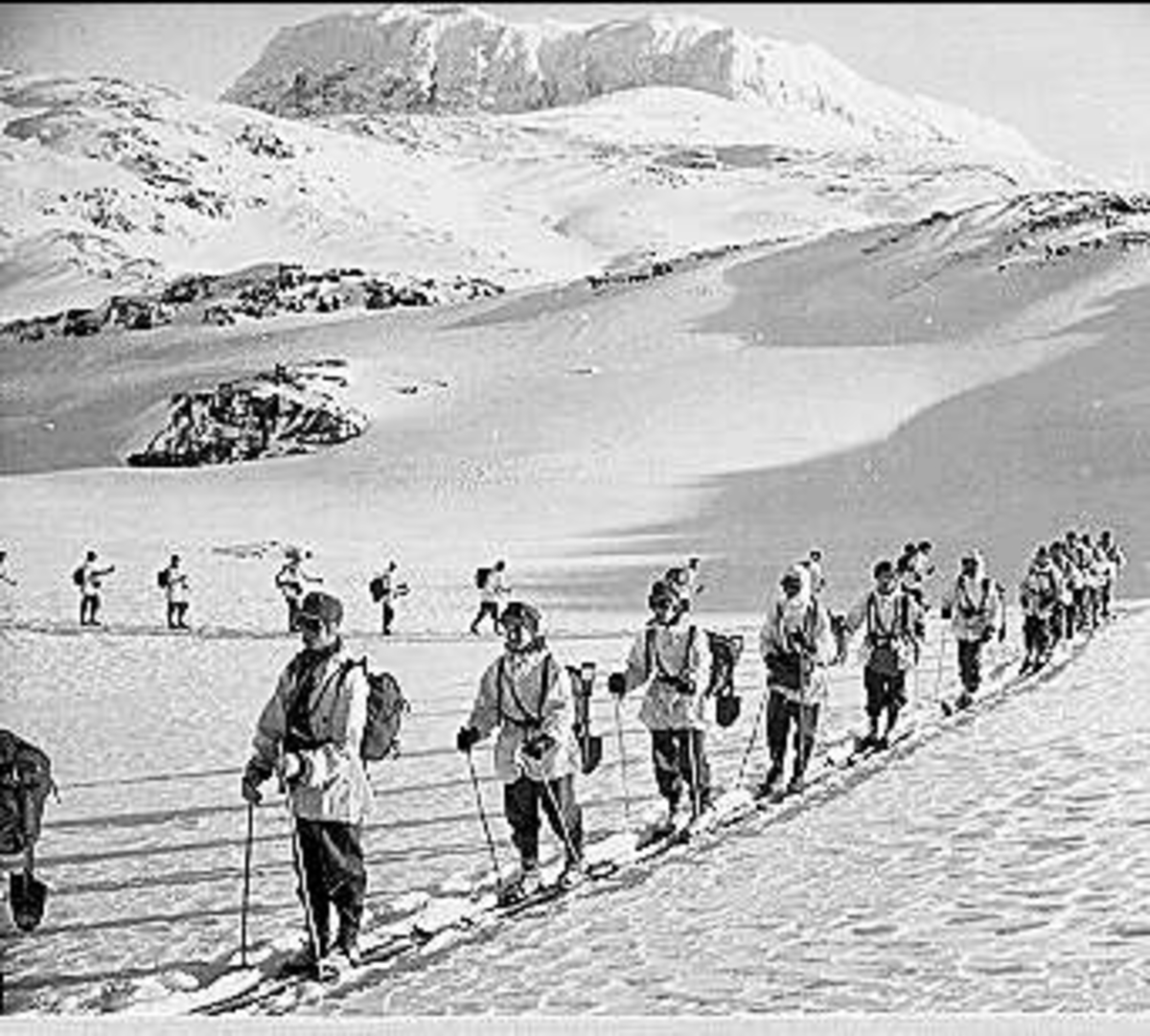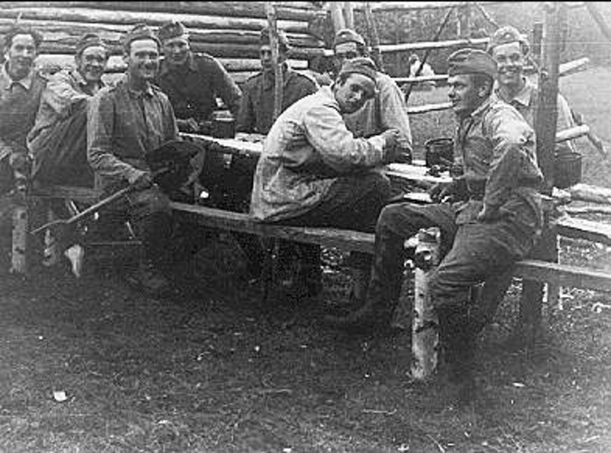 Livskv minnessten vid Fellingsbro avtäckes. I främre raden från vänster: major Afzelius, major H Ling-Vannerus, överste E Flodström, överste G Bergenstråhle och major Sven Littorin.