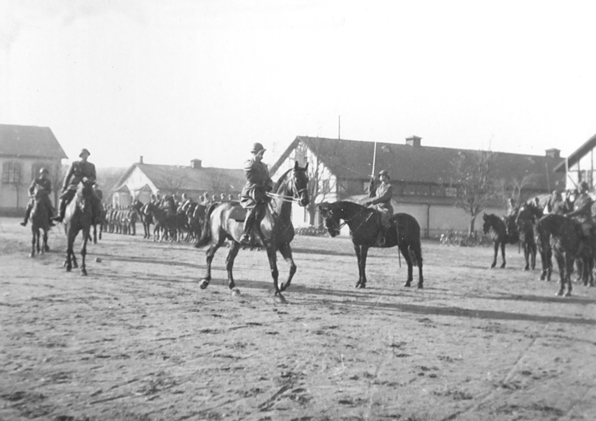 K3. Regementet lämnas av till sekundchefen på kaserngården söder stallarna.