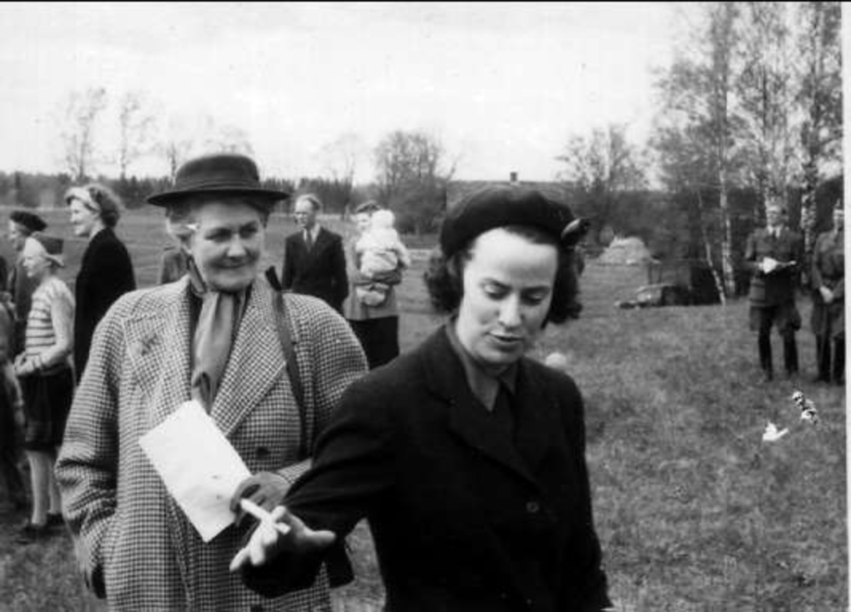Cecilia Lewenhaupt till höger, född Beck-Friis, maka till ryttm Sten Lewenhaupt med sin svärmor Ebba Lewenhaupt, född Falkenberg af Trystorp, moder till de båda K 3-ryttmästarna Claes och Sten Lewenhaupt.