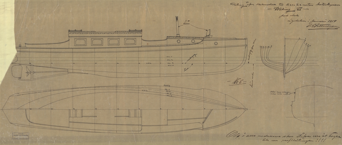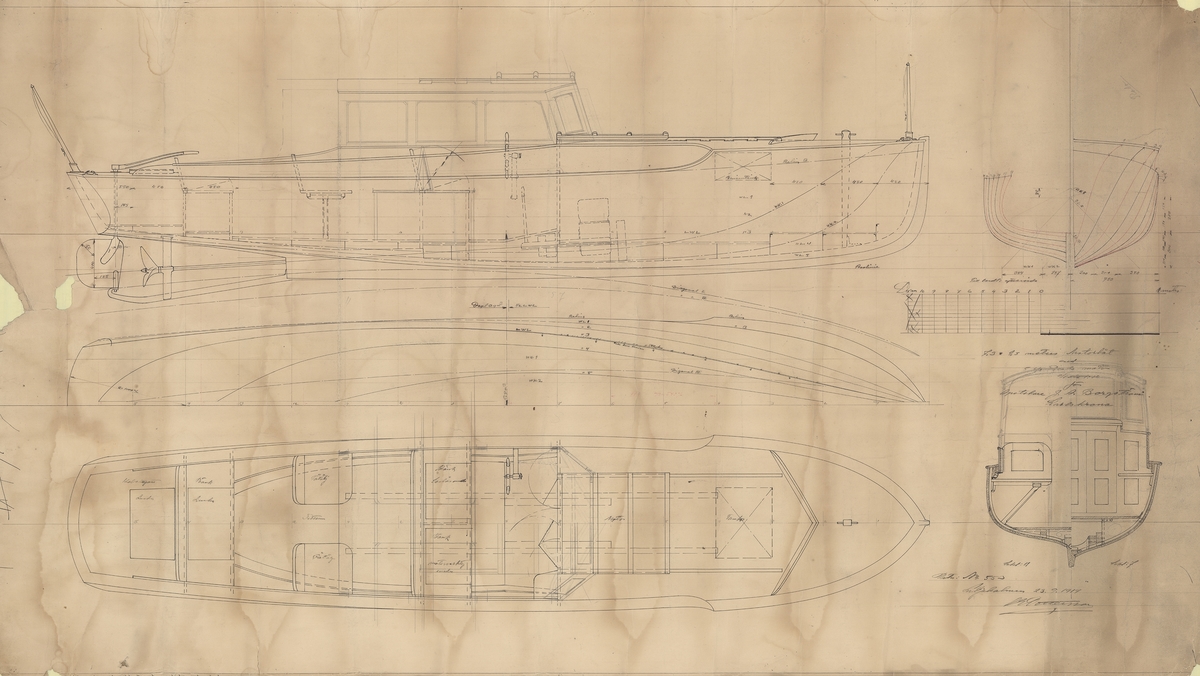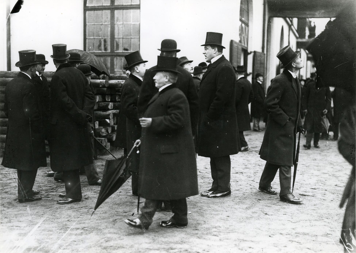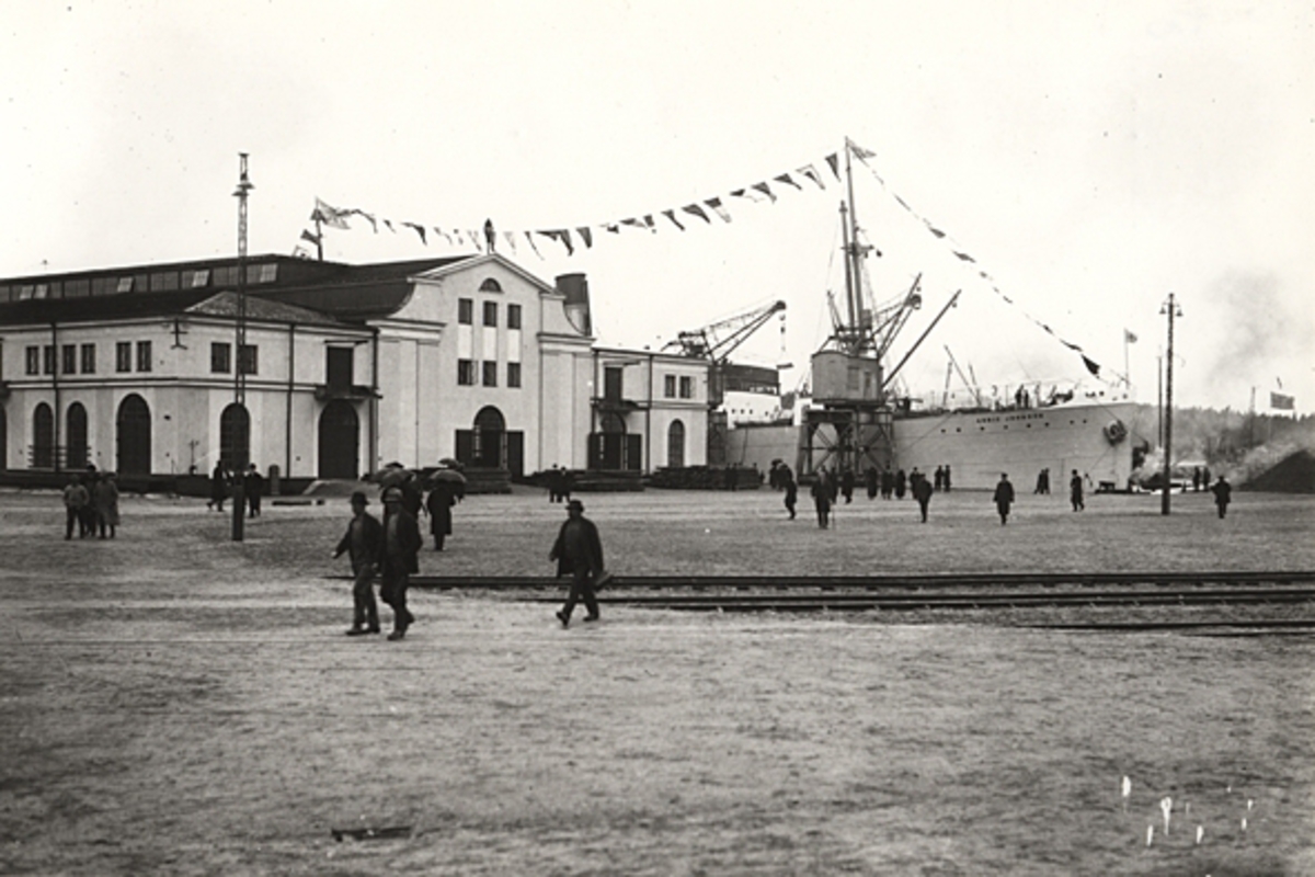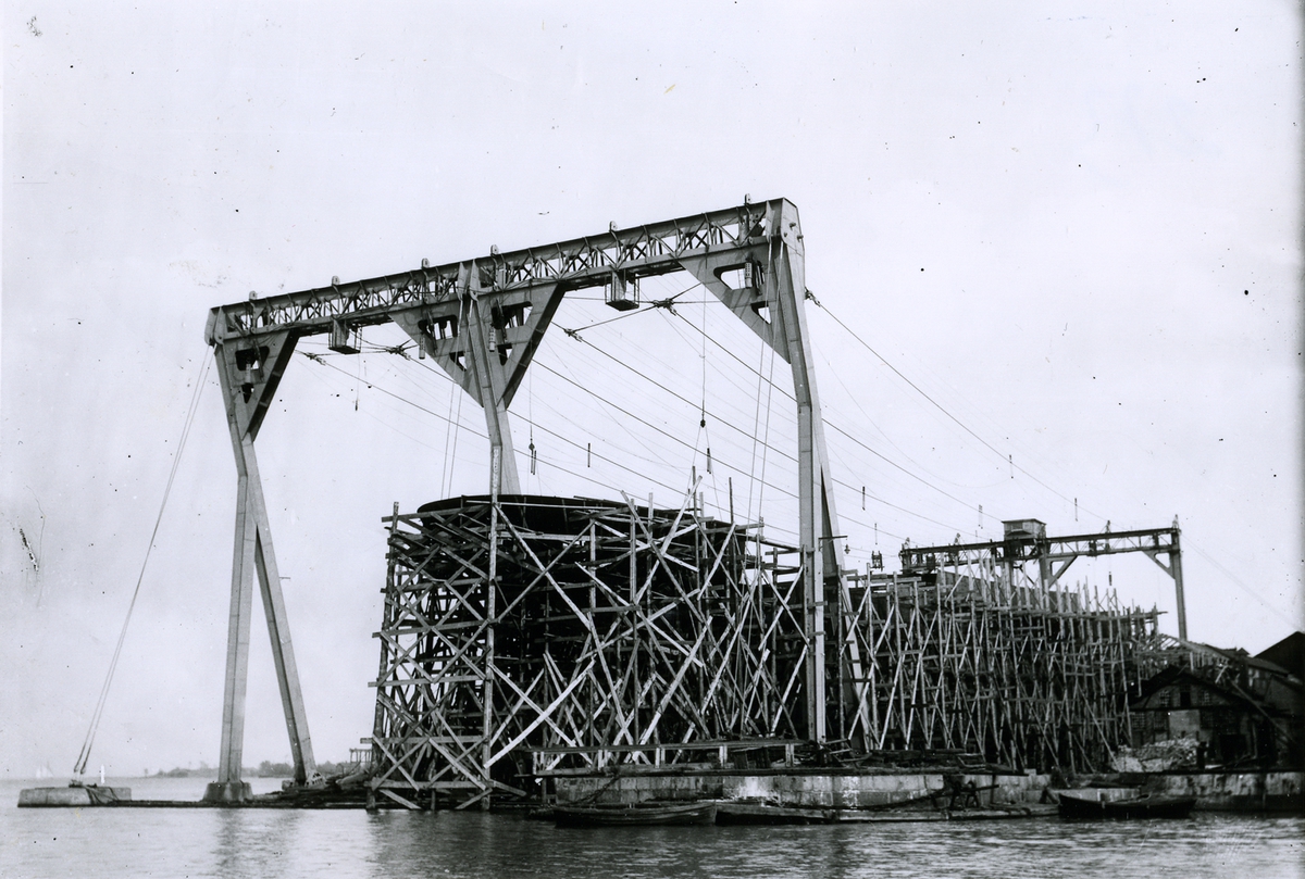 Fredriks Jonssons varv 1919. 3 msk Freja, 183 br.reg.t. under byggnad. I förgrunden varvspersonalen. Längst t.v. varvsägaren och byggmästaren Fredrik Jonsson.