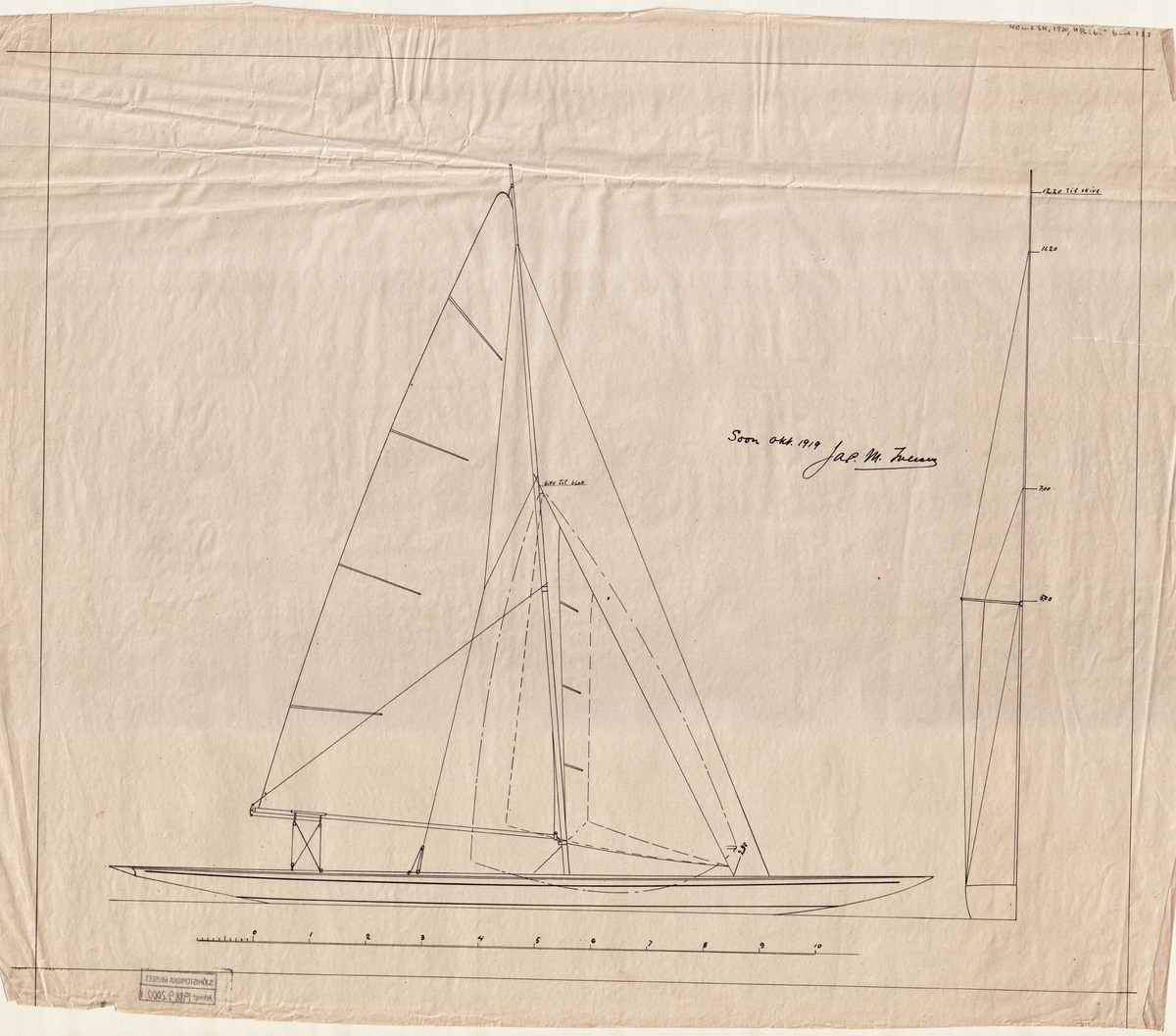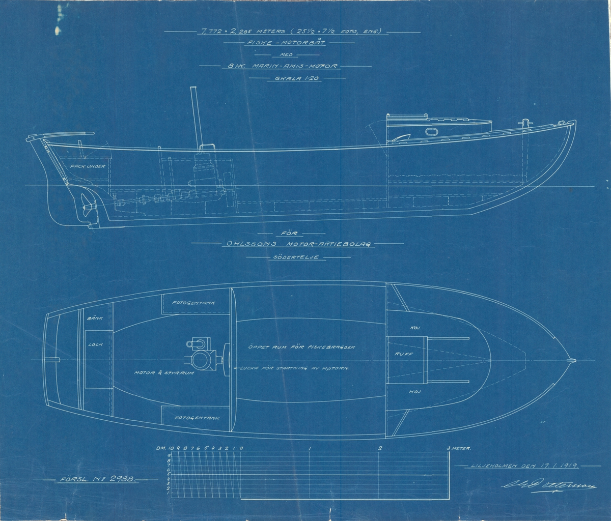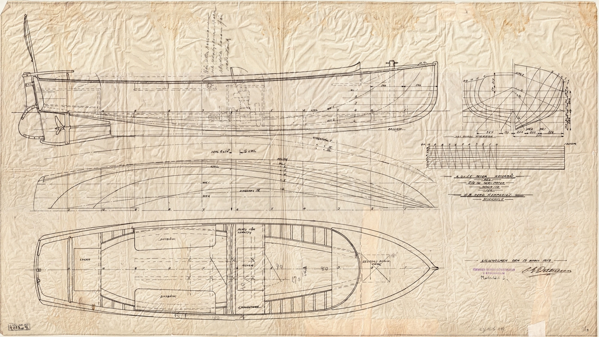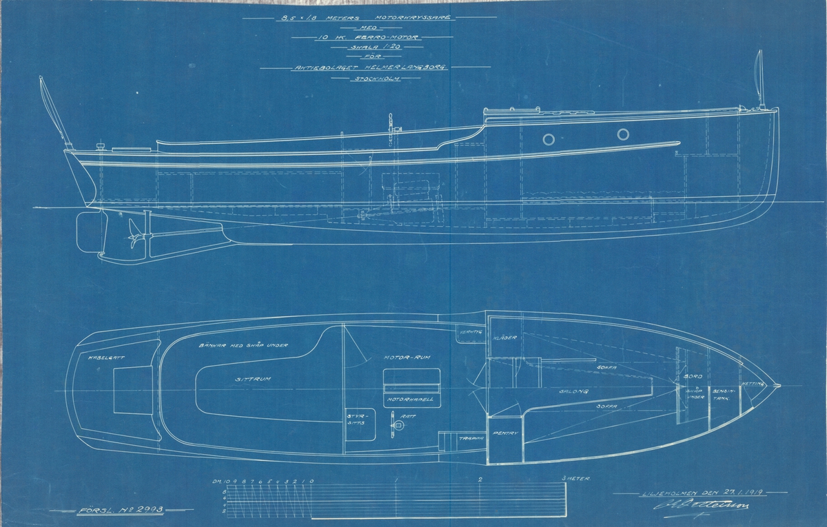 Fredriks Jonssons varv 1919. 3 msk Freja, 183 br.reg.t. under byggnad. I förgrunden varvspersonalen. Längst t.v. varvsägaren och byggmästaren Fredrik Jonsson.