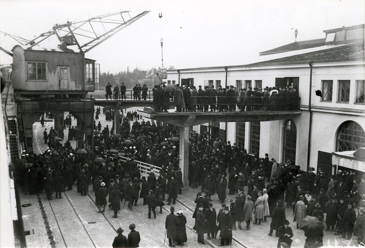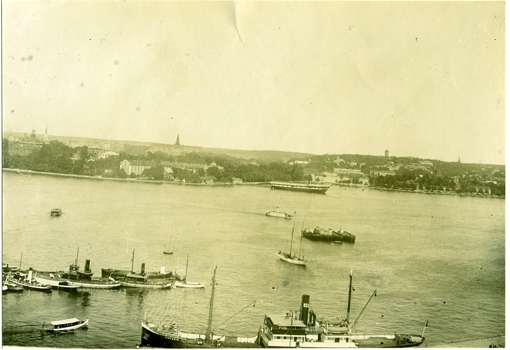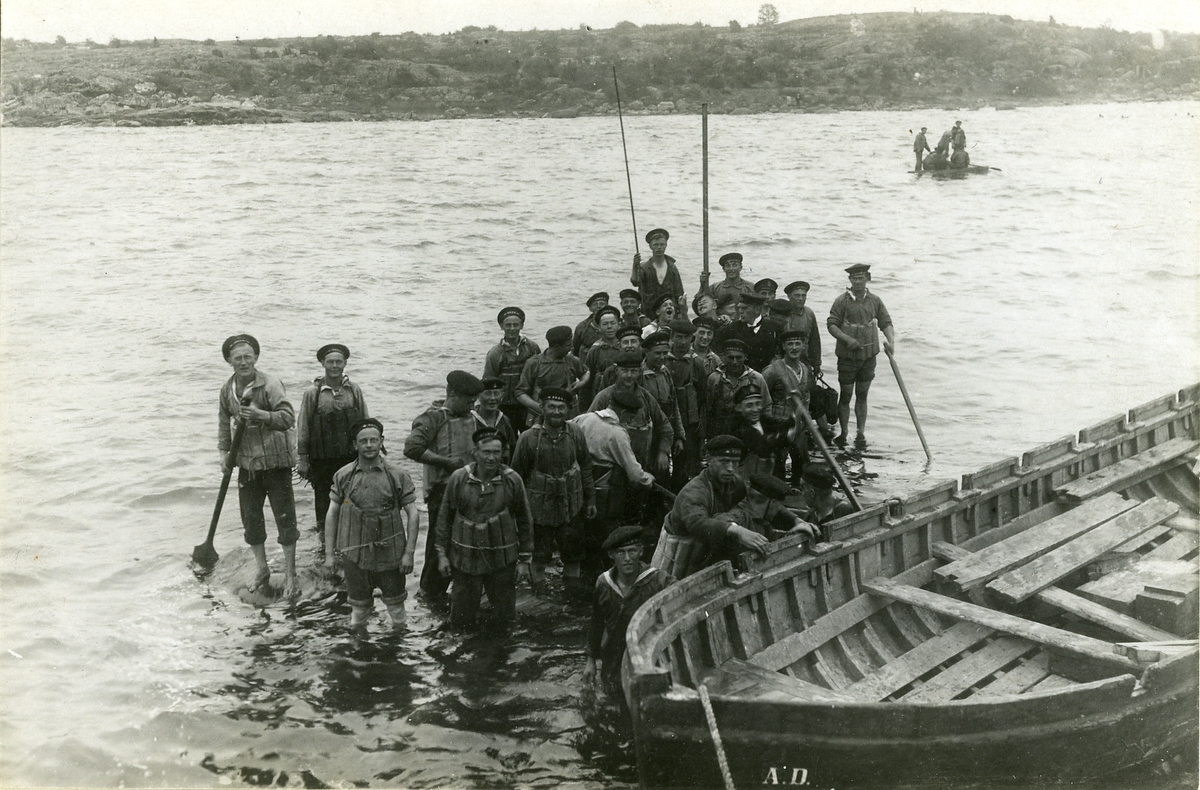 Övningar utanför Karlskrona 1919. Fartygets övergivande. I bakgrunden Saltö.