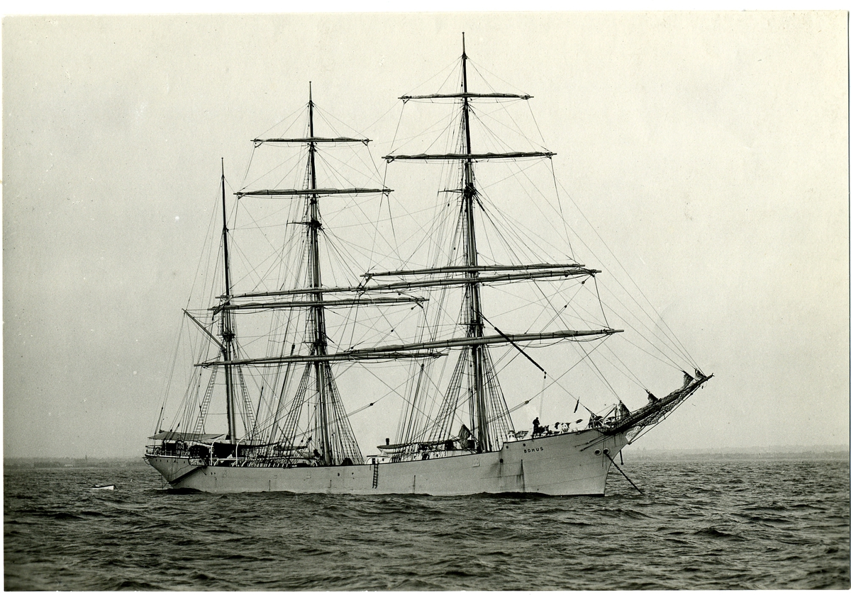 3-mast barken Bohus av Göteborg. till ankars på Rivöfjorden omkring 1919. fartyget såld till utlandet 1923 (enl. uppg. från Transatlantics arkiv).