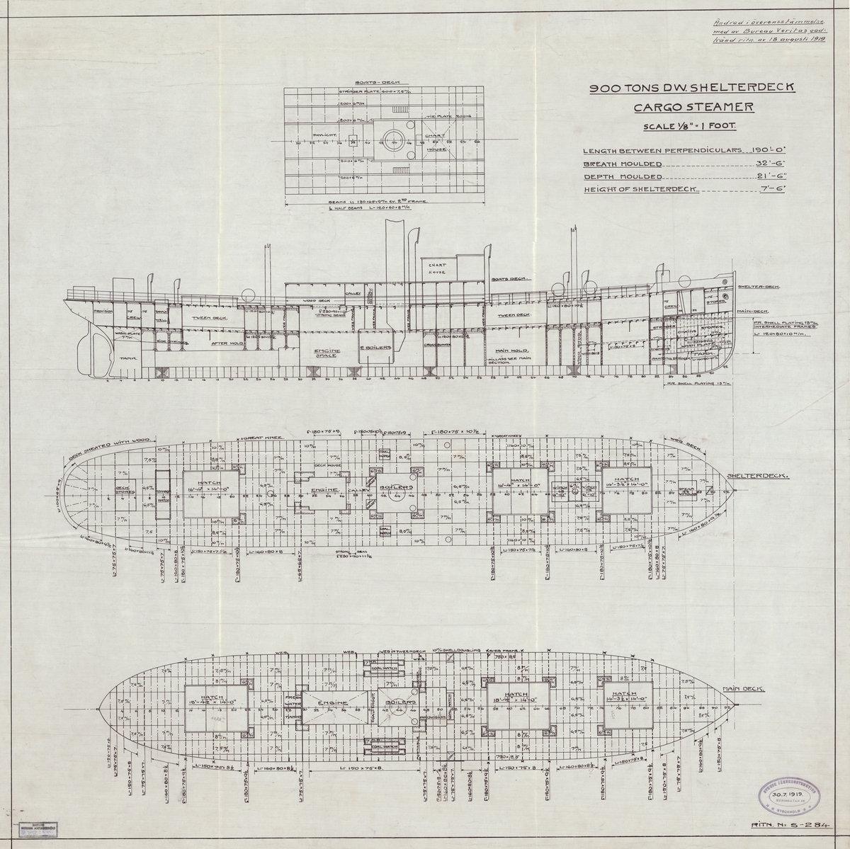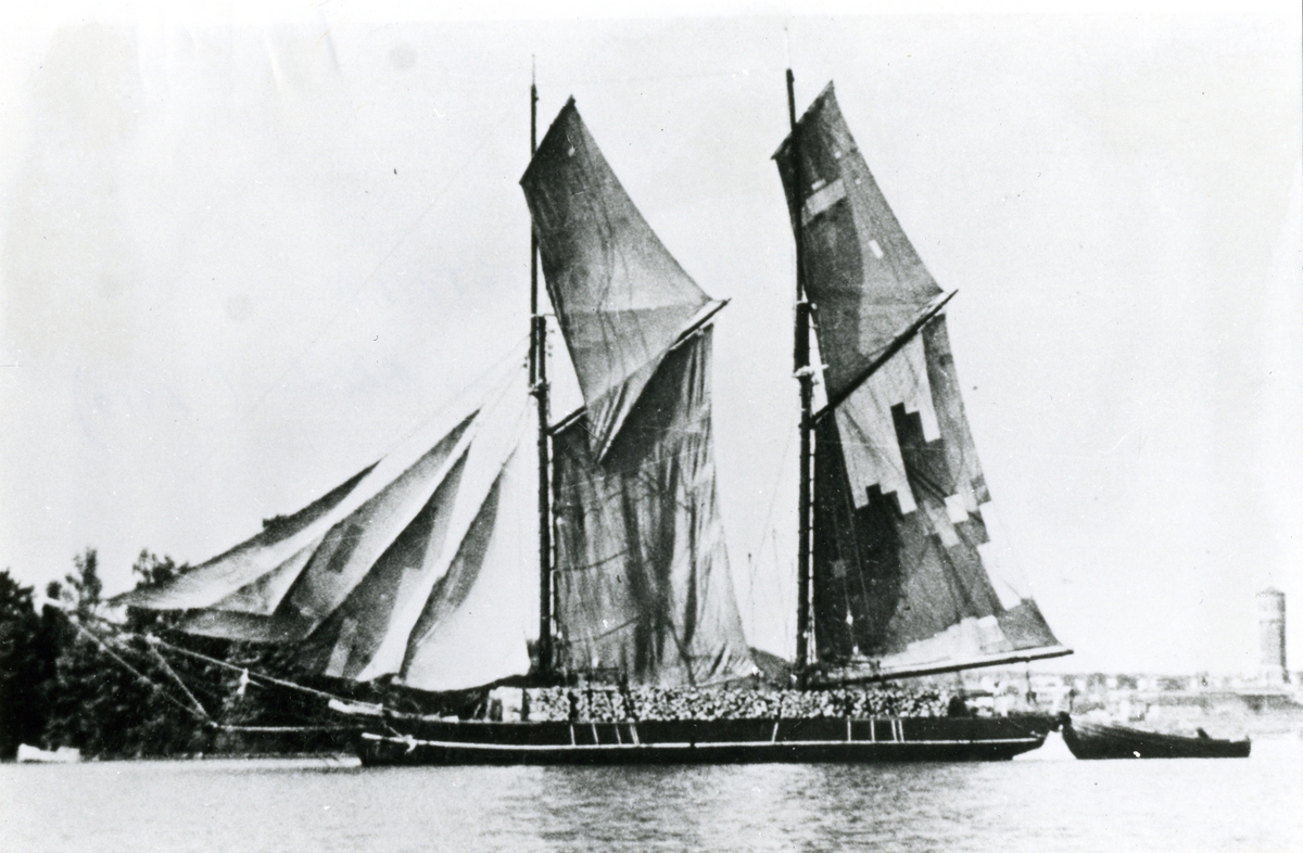 Lastångfartyget "SVERKER" av Simrishamn, på ingående till Åhus den 27.9.1919.