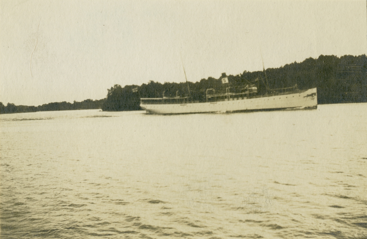 Passagerareångfartyget BIRGER JARL av Stockholm under gång i skärgården.