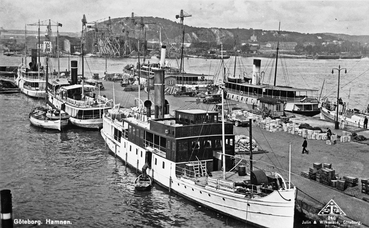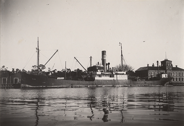 Lastångfarytget EDDA av Stockholm på ingående till Åhus, nov. 1921.