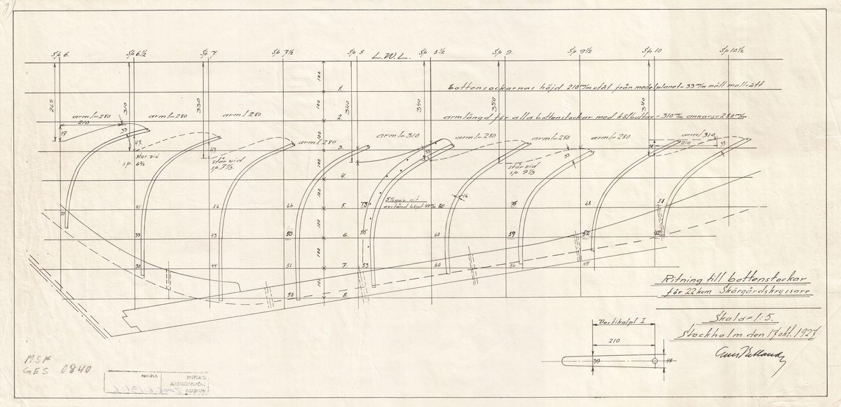 Diverse trossar förliga 28 cm. kanon samt förl. mastkomplexet på pansarskeppet Drottning Victoria.