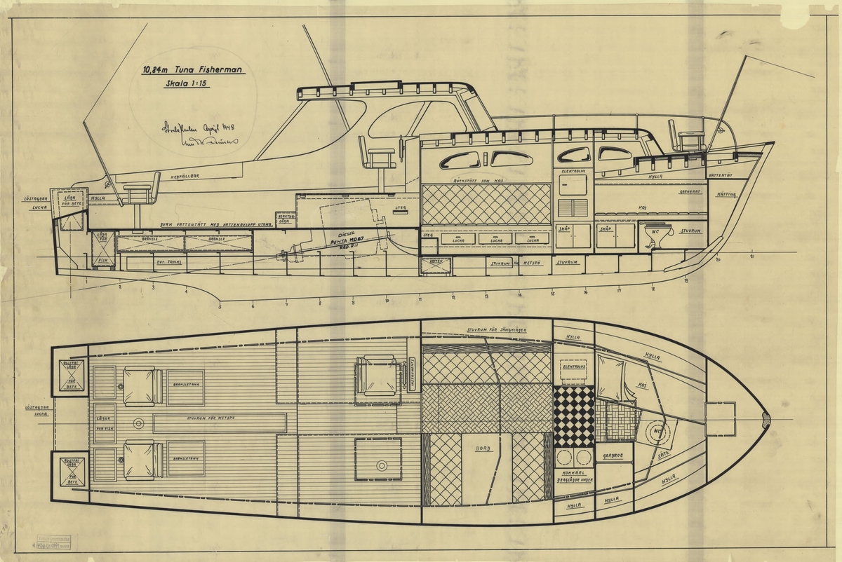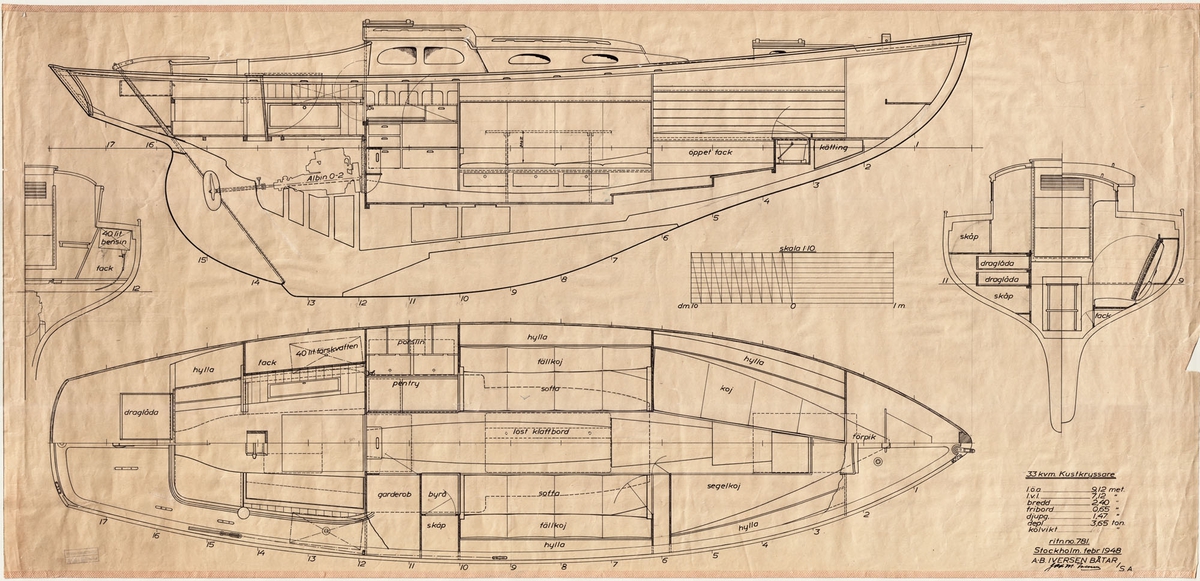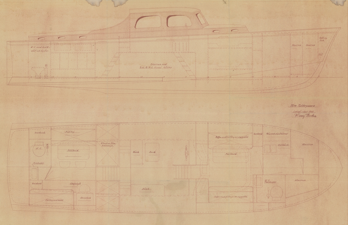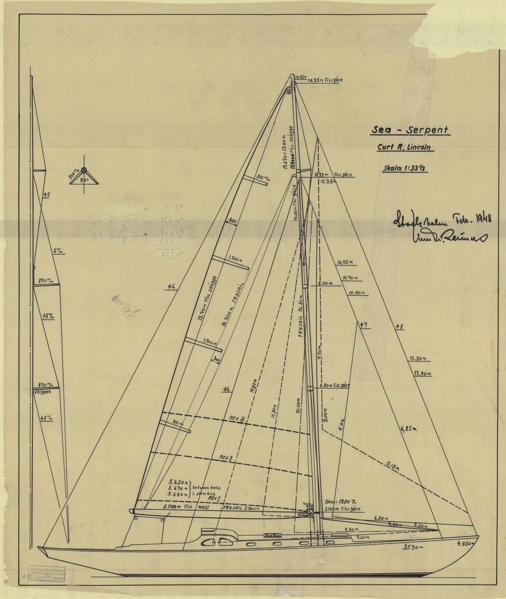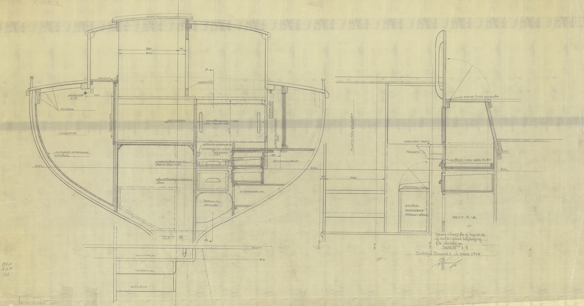 Jagaren Uppland på provtur. Kom.kapten Svedelius demonstrerar en pejlkikare den 1 nov. 1948.