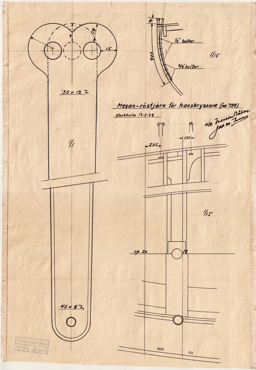 [från fotobeskrivningen:] [---] "F d 4-mastbarken MOSHULU avriggad som magasin (hulk) i Hammarbyhamnen i Stockholm år 1948." [---]