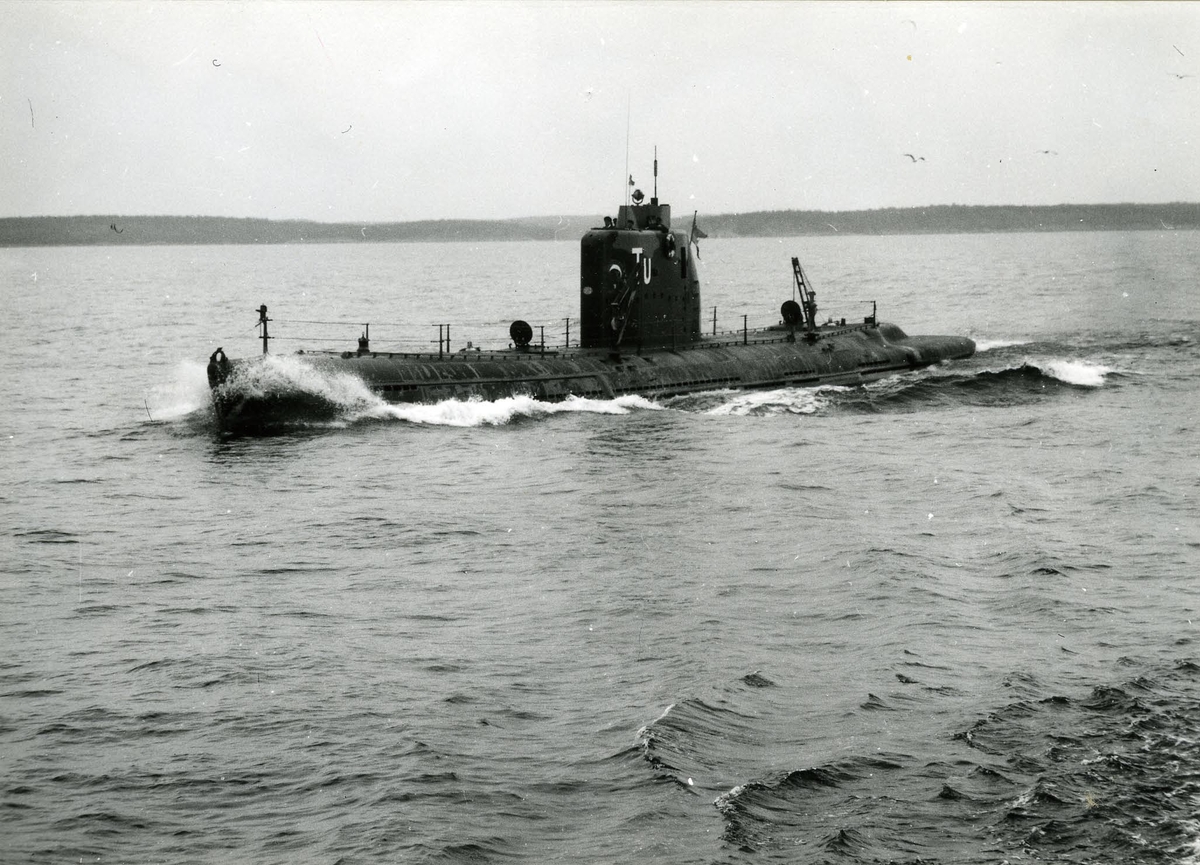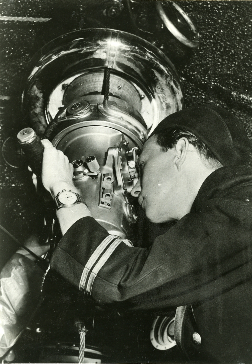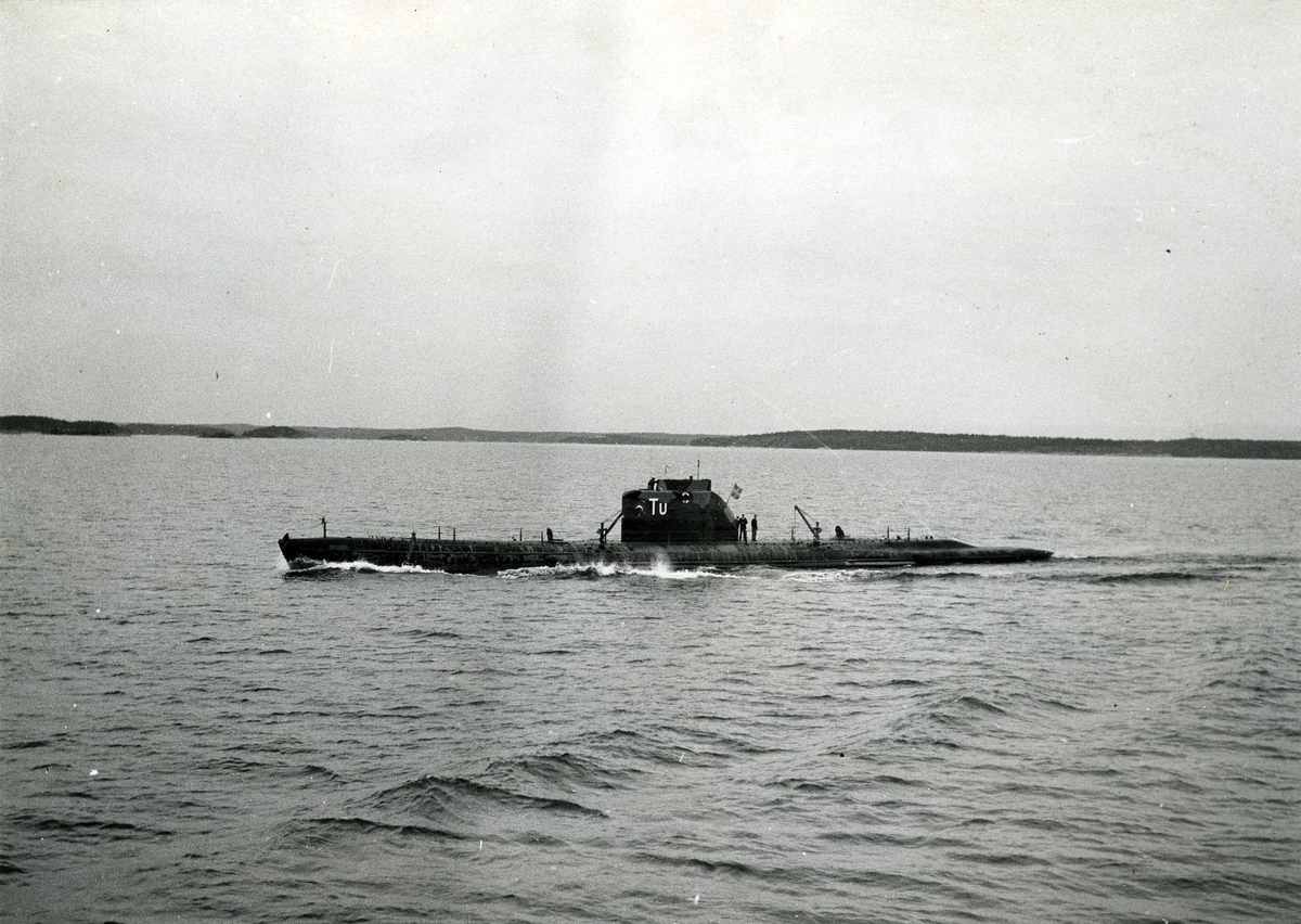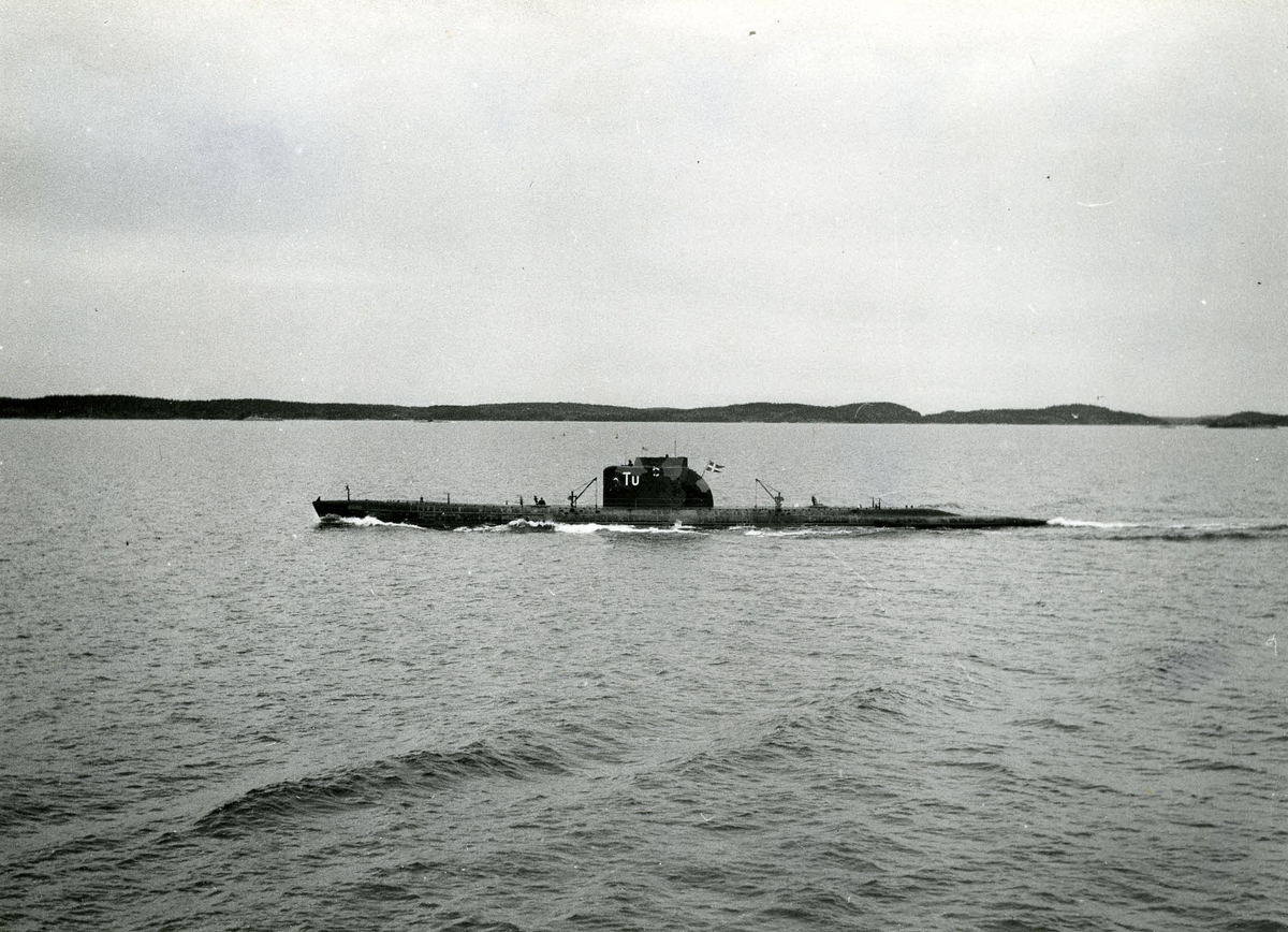 Helikopter har just landat på en av kryssaren Tre Kronors kanontorn