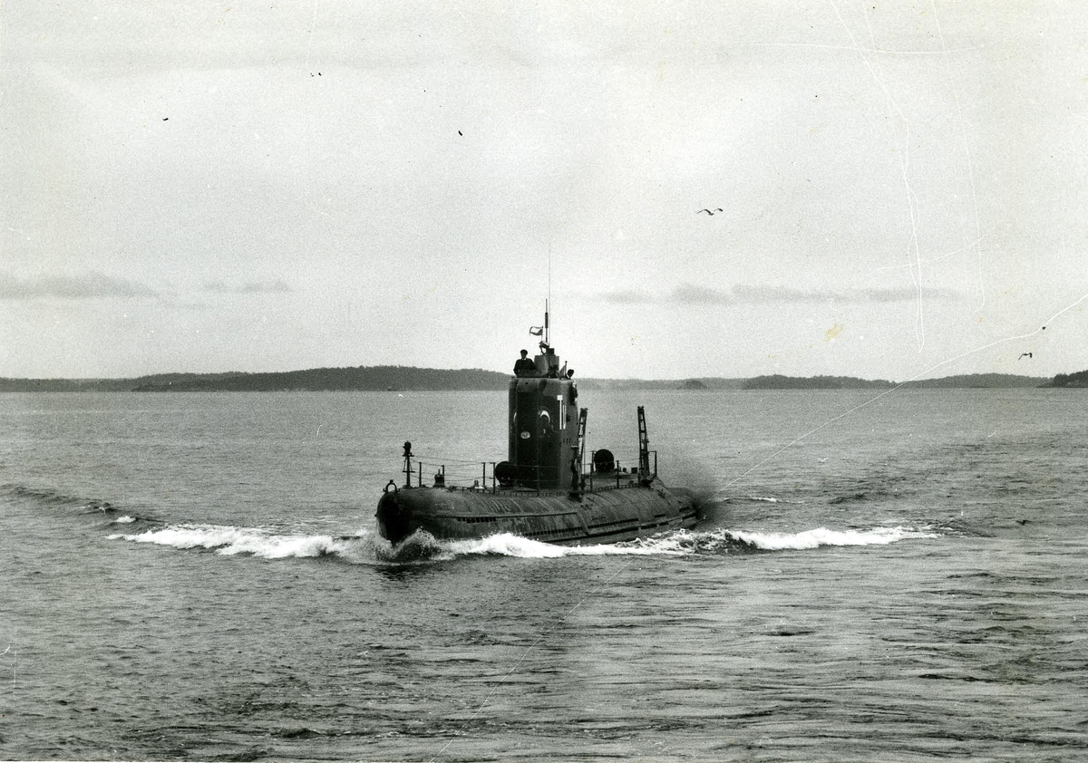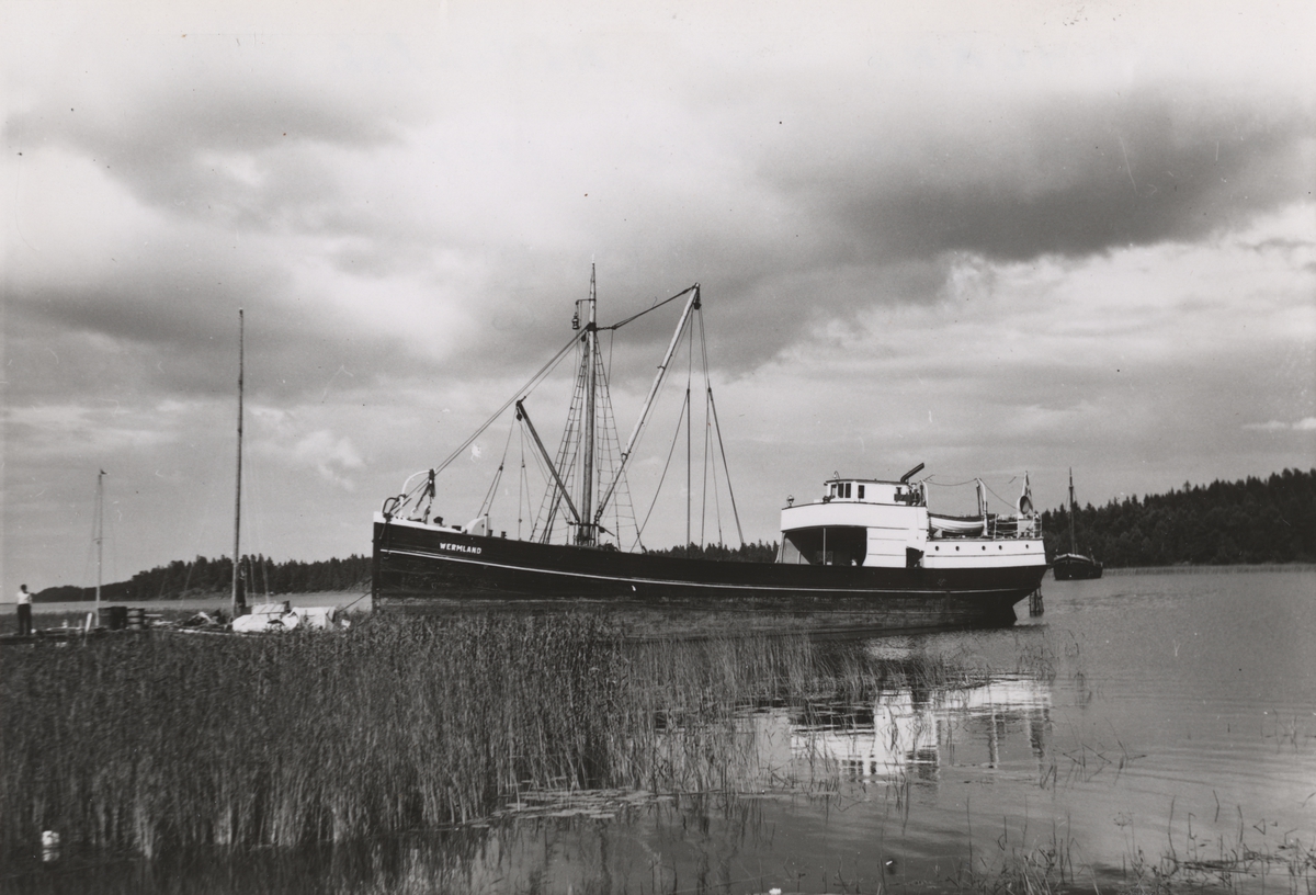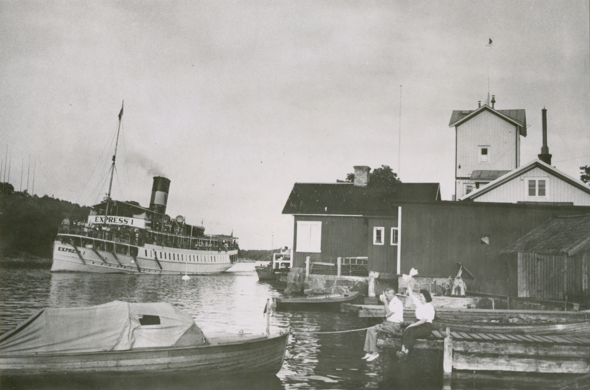 Passagerarångfartyget EXPRESS I av Vaxholm i Sandhamnsgattet 1954.