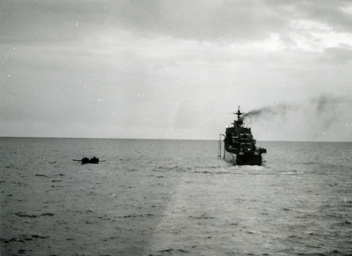 Foto i svartvitt visande lastmotorfartyget "ORINOCO" i Köpenhamn maj månad 1954.