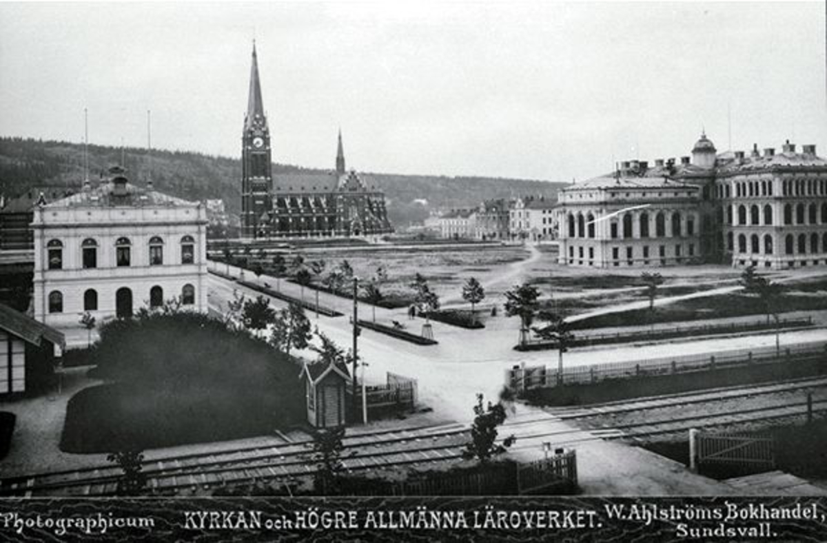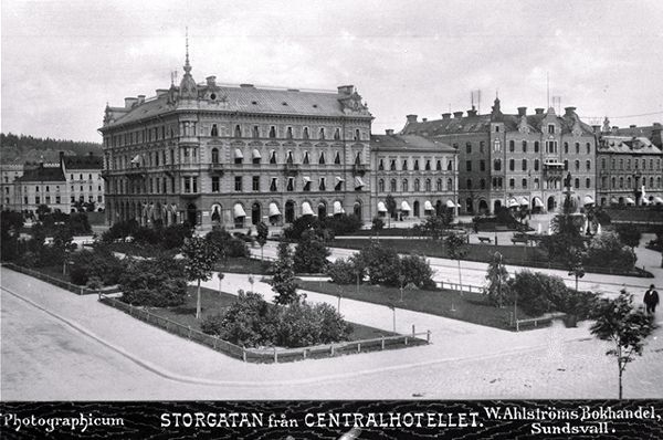 Bildtext på vykortet "Sundsvall. Stora torget med Stadshuset -1880 talet."