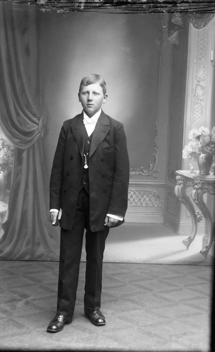 Sven Jonsson, Hjärtum 1915-05-14 står i sin spjälsäng som flyttats intill bordet där en ordförandeklubba ligger