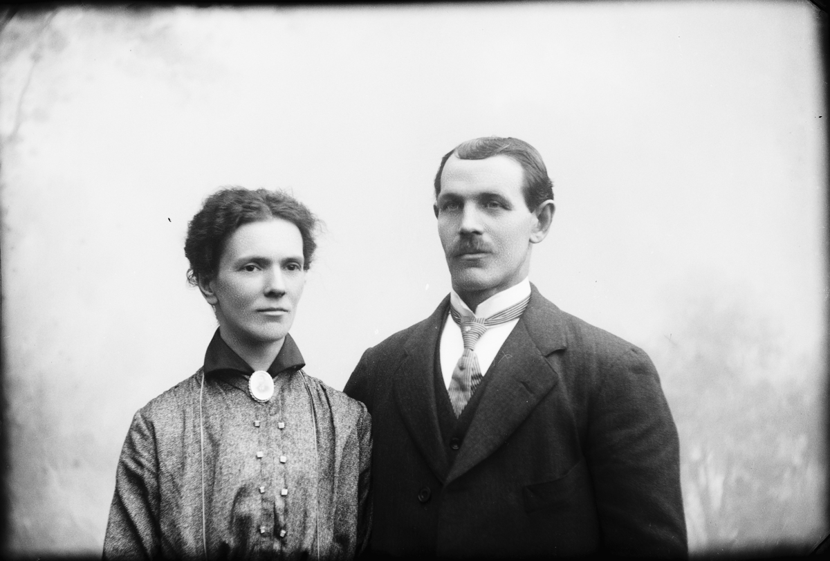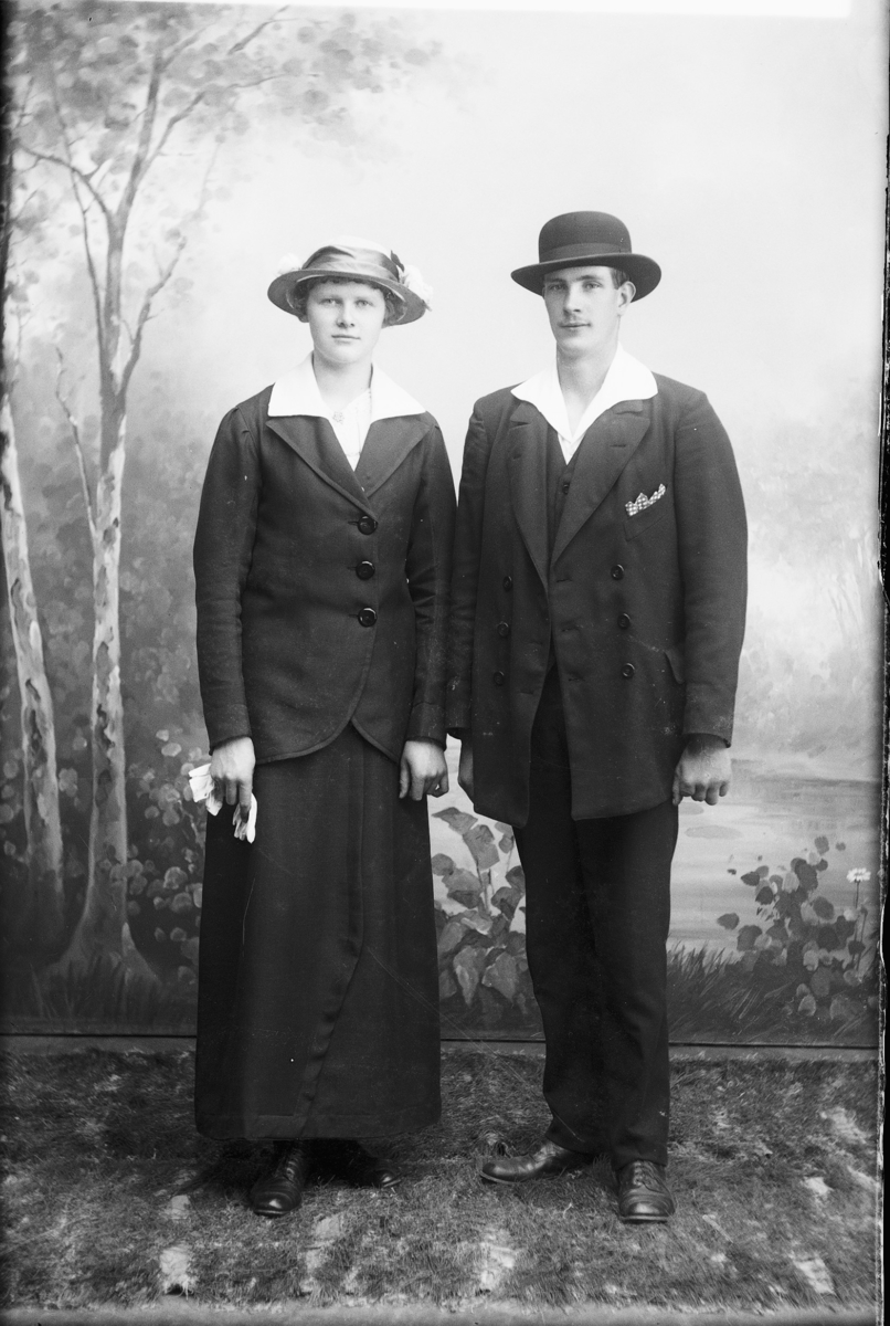 Olof Jonssons text: Ljungvall, Sven och Olga, 23 maj 1916. Bilden tvådelad, Ljungvall, Olga, född Olsson, Forshälla 1891-05-12, Sven, Hjärtum 1915-05-14.