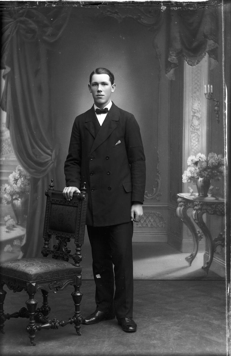 25 juni 1916 i Brevik: Karl Johansson, Hjärtum 1884-10-14, från Brevik med sin fästmö Lisa. Bilden tagen i Brevik med Öresjö i bakgrunden.
