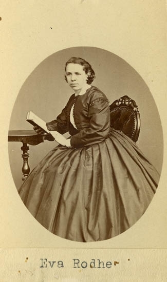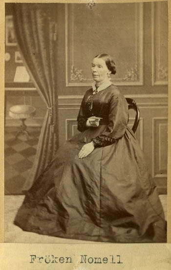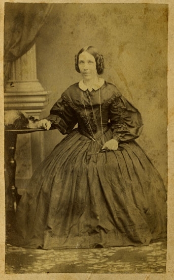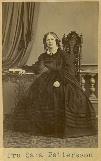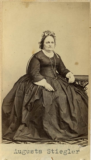 Text på kortets baksida: "Augusta Regina Stiegler, född Sandegren. F. 14/2 1811 d. 4/10 1879. Deltog 19/1 1836 i stiftandet av Ua Sparbank. G. m. Johan Andreas Hiegler, F. 1809 d. 1869".
