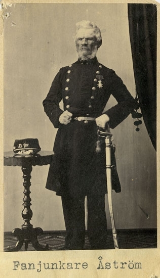 Text på kortets baksida: "Fanjunkare Carl Peter Åström. Löjtnants afsked. F. 1805".