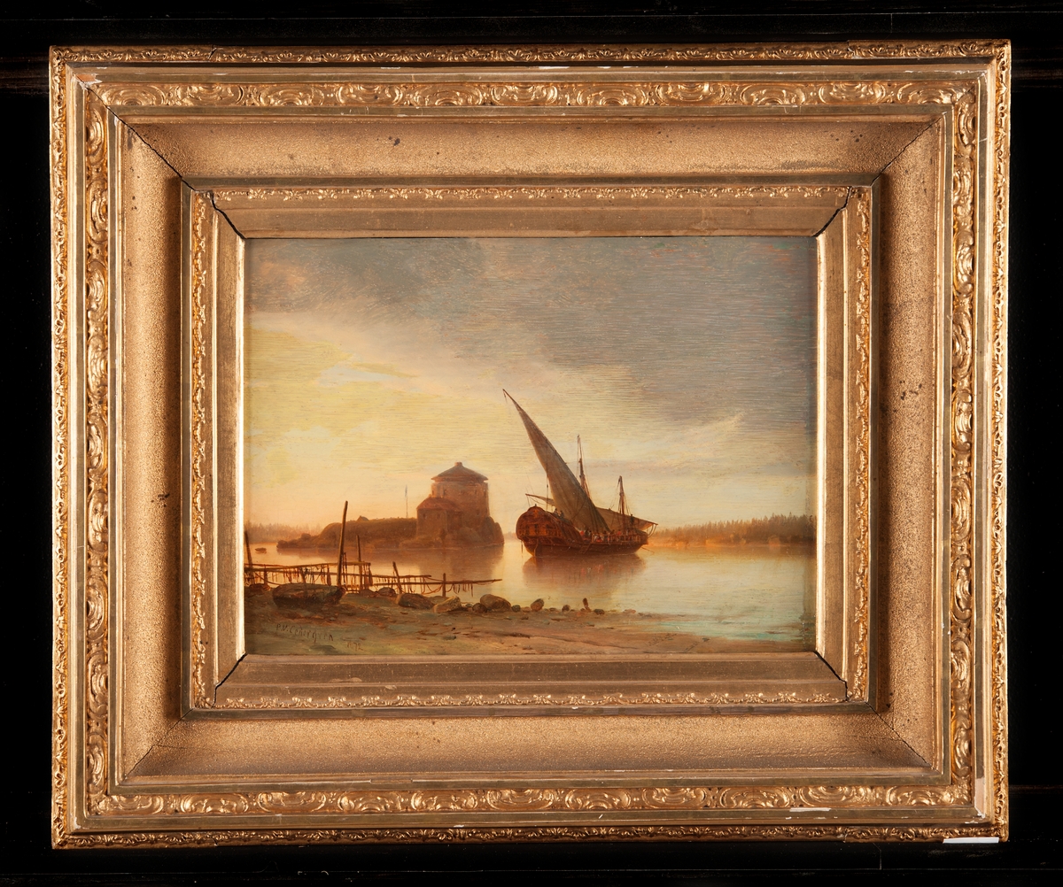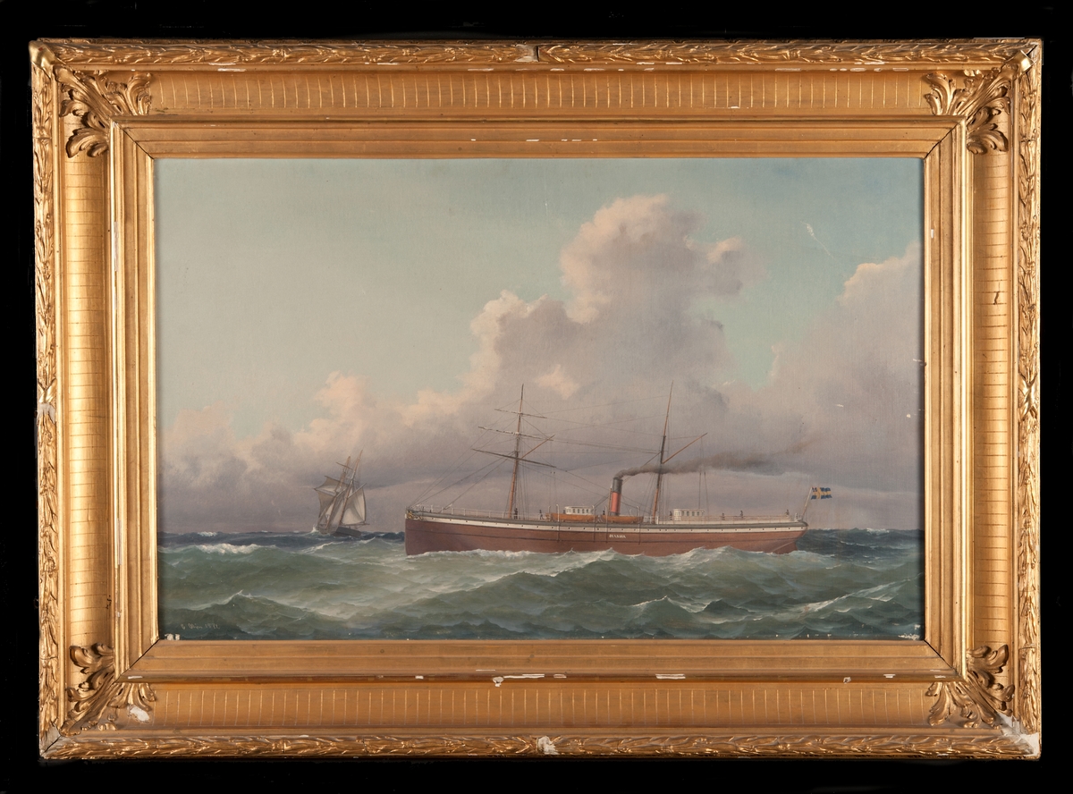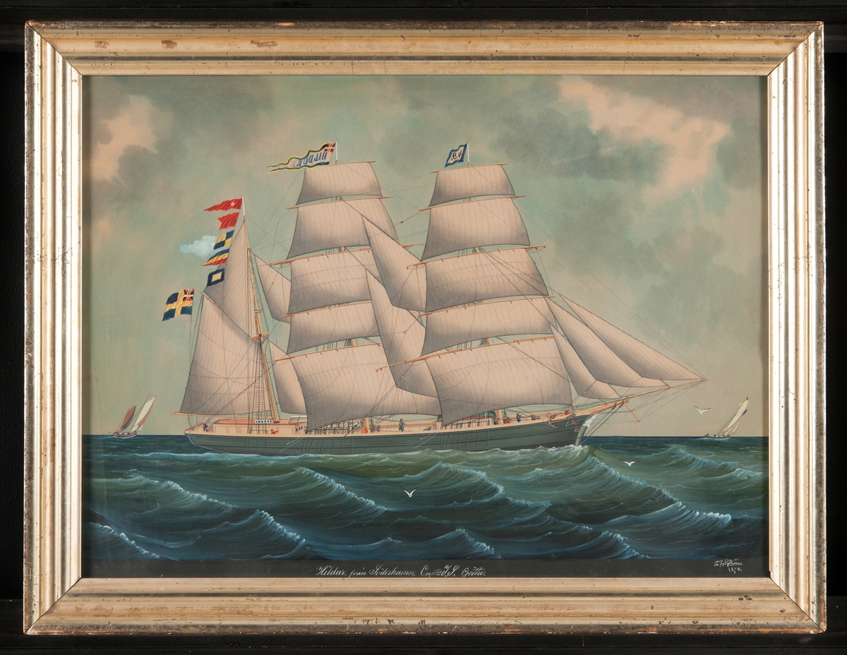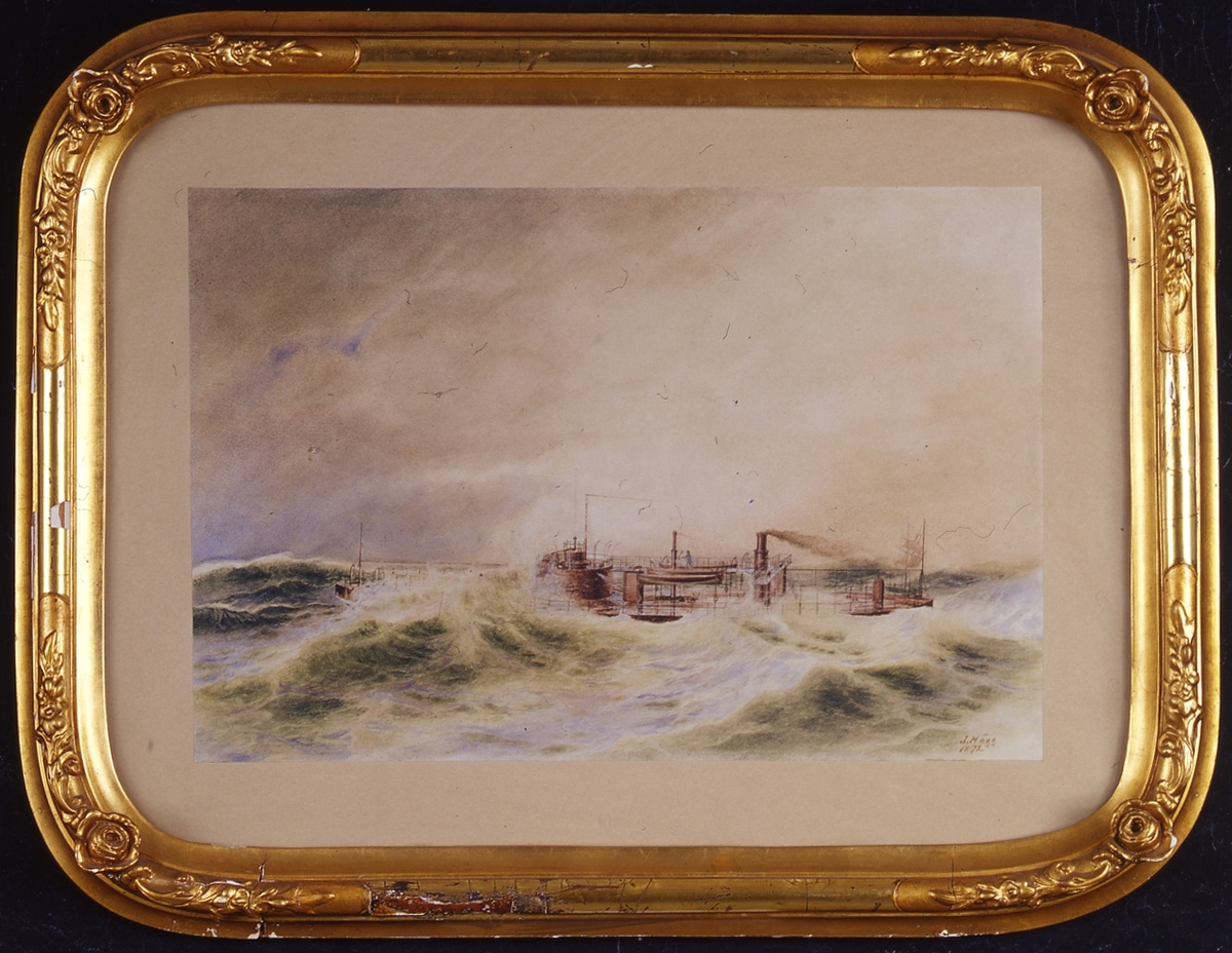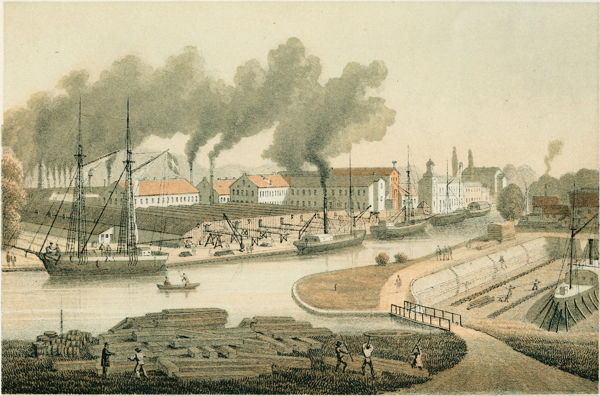 Gustavsbergs hamn år 1873. På fotot ses hjulångaren Wermdö (första båten i Gustavsbergsflottan), ångbåten Gustafsberg I och briggen ........av Figeholm.