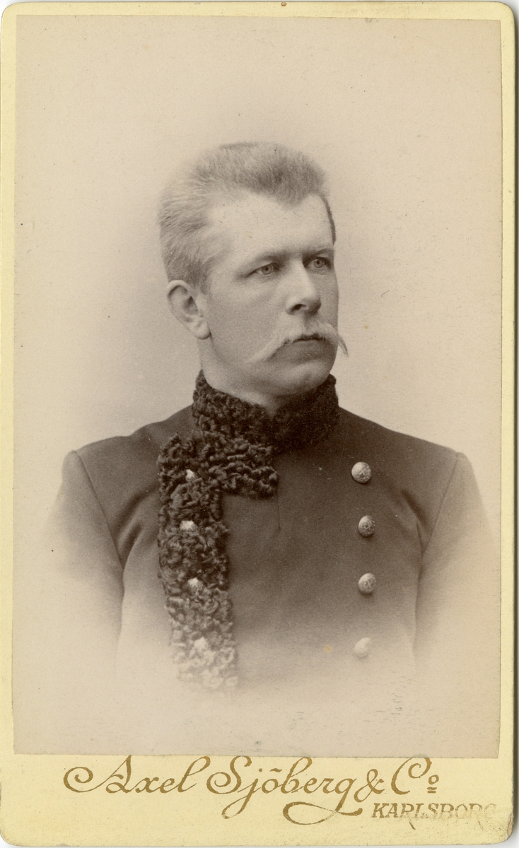 Porträtt av Aron Fredrik Petersson, löjtnant vid Kronobergs regemente I 11.