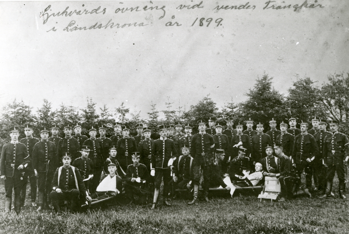 Sjukvårdsövning vid Wendes trängbataljon T 4 i Landskrona, 1899.