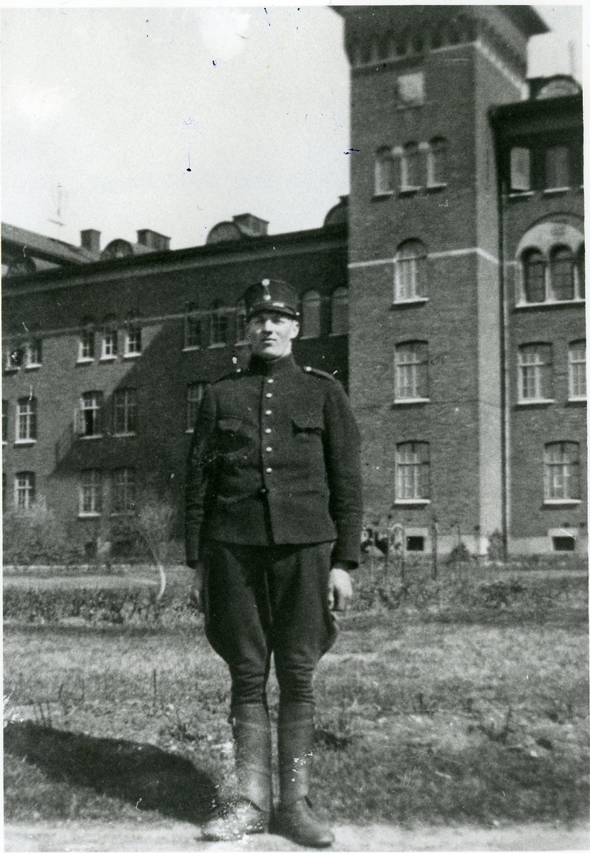 Banhoppning på fältet söder K 3 kasern off.asp i m/23, vpl i m/1895. De gamla uniformerna användes långt efter det att ny modell fastställts. Modell 1895 användes ända fram till 1940-talet. (exempelvis en volont&a