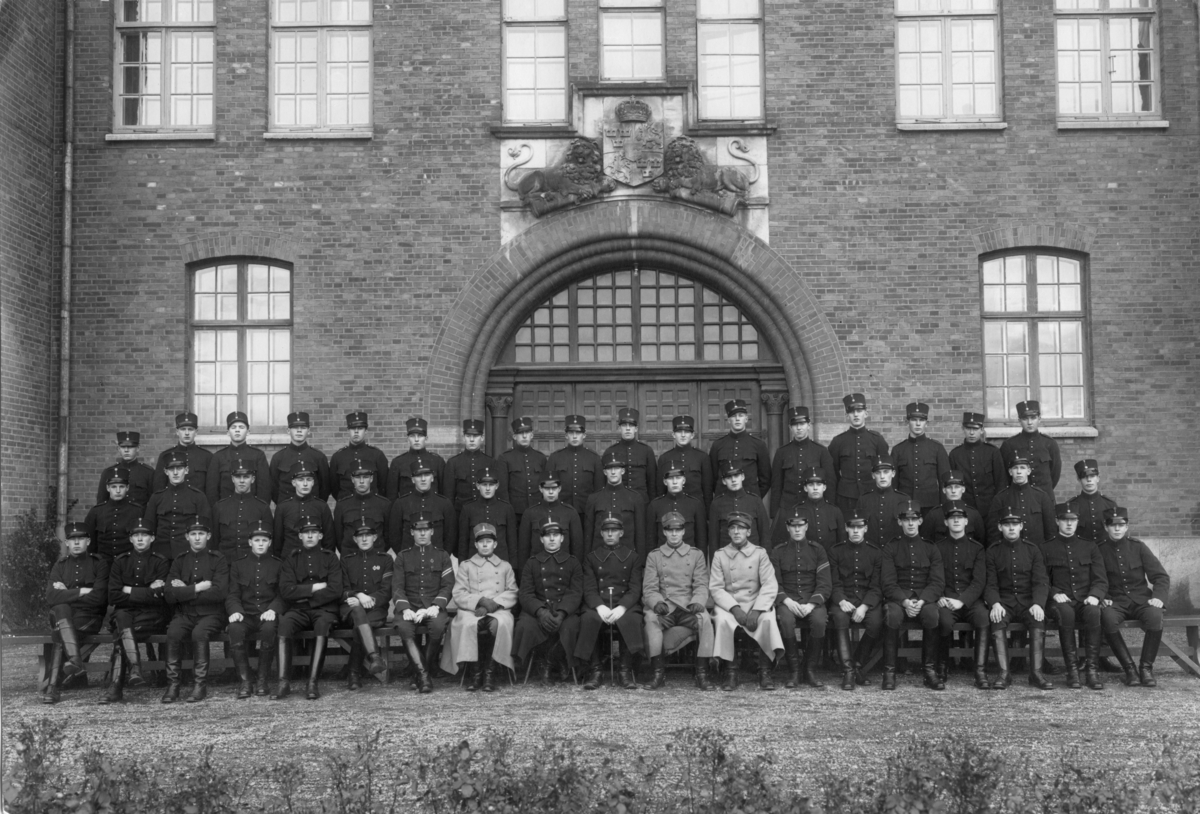 Förbimarsch för sekundchef. överste Knös framför valvet K 3 kasern.