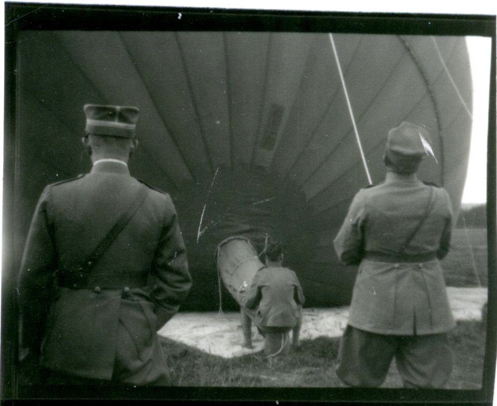 Karlsborg 1932. Kapten John Stenbeck har ordergivning före flygning. I bakgrunden S6 Fokker.