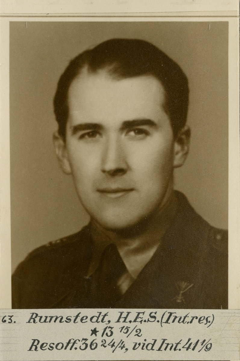 Porträtt av Hans Erik Samuel Rumstedt, kapten vid Intendenturkåren.