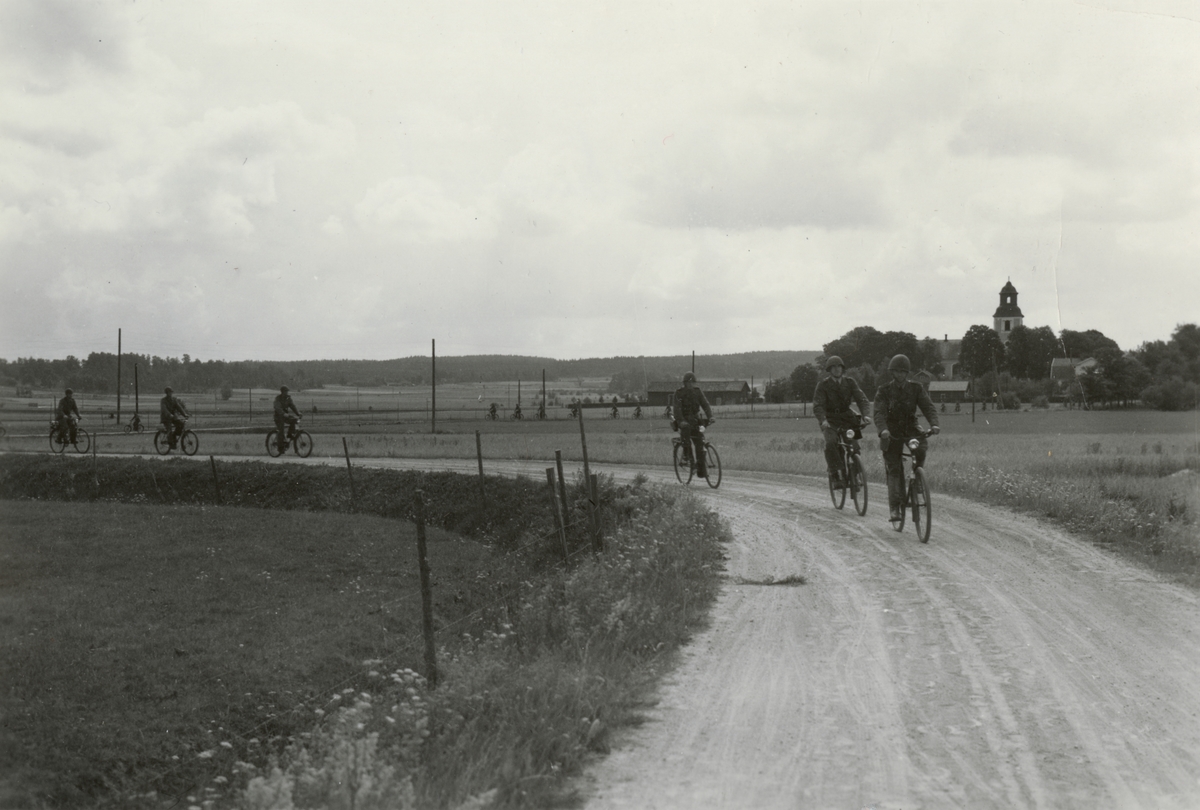 Soldater från Södermanlands regemente I 10 på cykelmarsch.