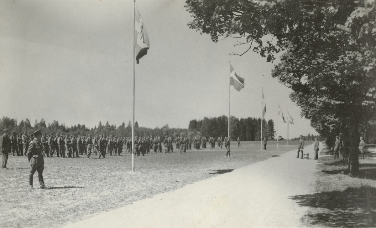Karlsborg Heden 1941. Svenska flaggans dag. Karlsborgs manskör.
