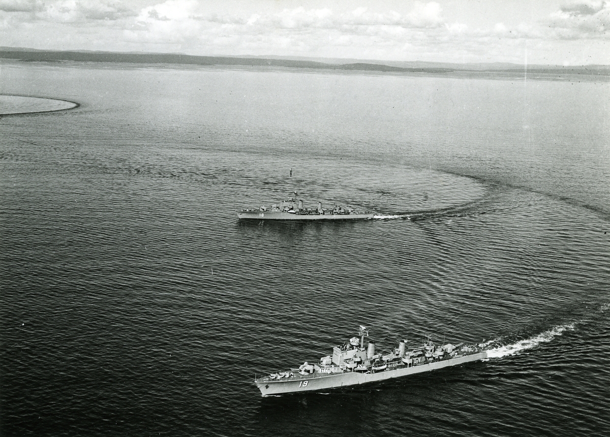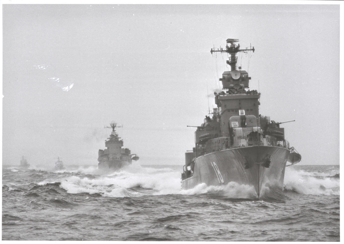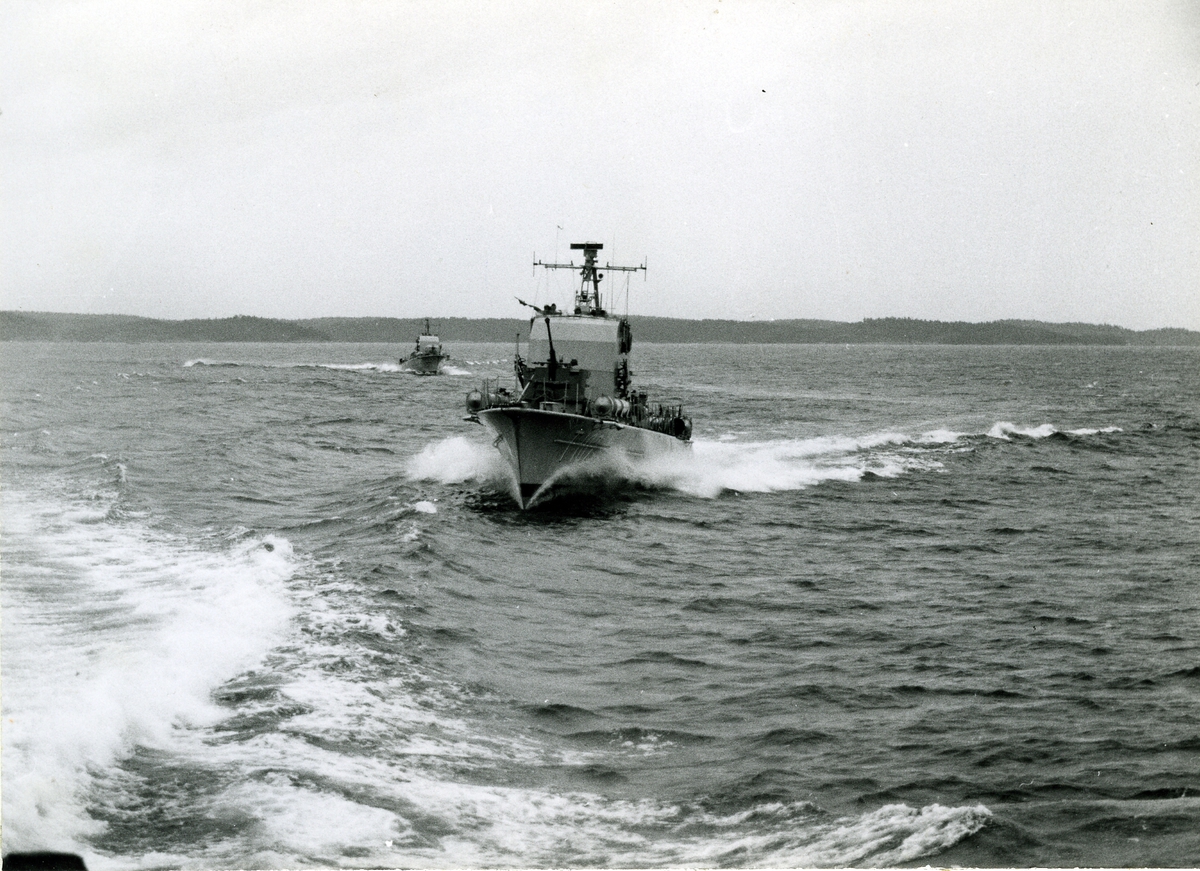 Jagarflottilj med jagaren Halland i spetsen under "Operation Nordkust" 1957.