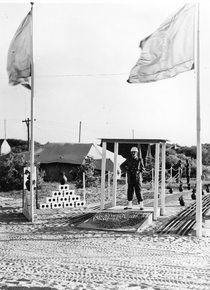 F6 Karlsborg 1957. Från vänster: Chefen armén general Ehrensvärd, chefen F6 överste Söderlindh.