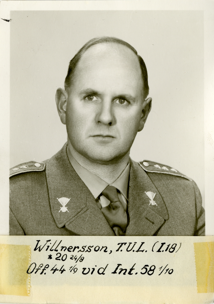 Porträtt av Tage Uno Lennart Willnerson, officer vid Gotlands infanteriregemente I 18 och Intendenturkåren.