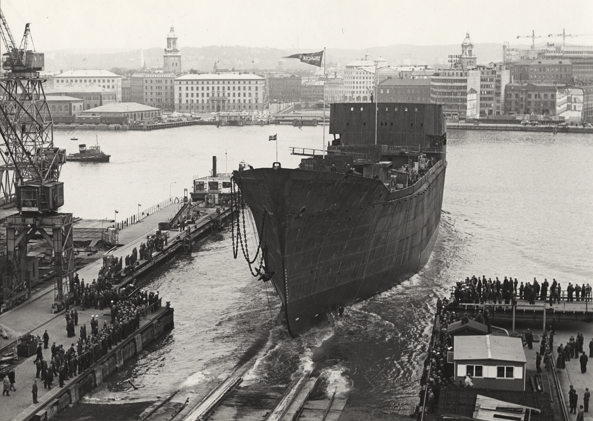 Bilden tagen vid Waxholm III:ans bogsering från Högmarsö varv till Vaxholm för att byggas om till café.