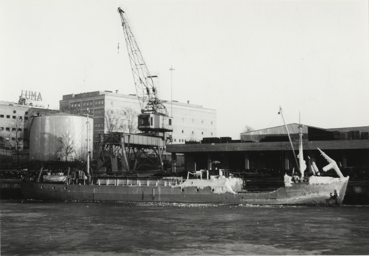 Lastfartyget m/s Gondul ivid kaj i Stadsgården, Stockholm 1964. I förgrunden m/s SVEA JARL.