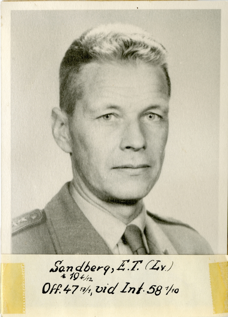 Porträtt av Erik Torsten Sandberg, officer vid Luftvärnet och Intendenturkåren.