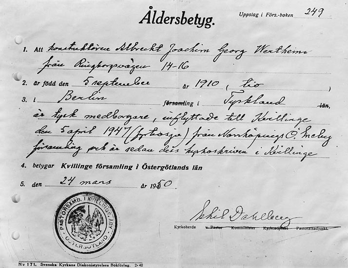Enligt fotografens journal nr 7 19441950: "Almroth, Herr Rune Lantmäterikontoret".