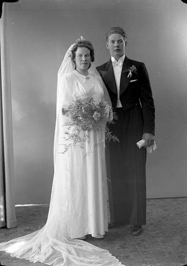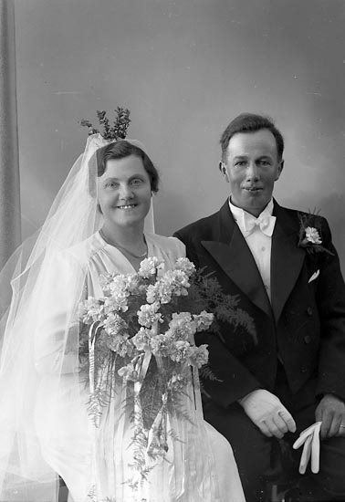 Enligt fotografens journal nr 6 19301943: "Börjesson, G. Brudpar Högenorum Här Bruden".