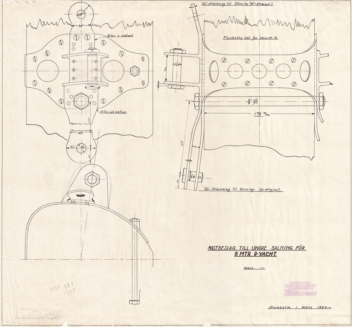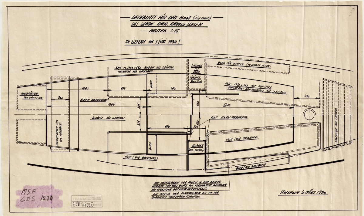 Arm badge, Royal Naval uniform: pattern 1930-1947, Submarine Detector, 1st Class. Submarine Detector's (1st Class) arm badge.